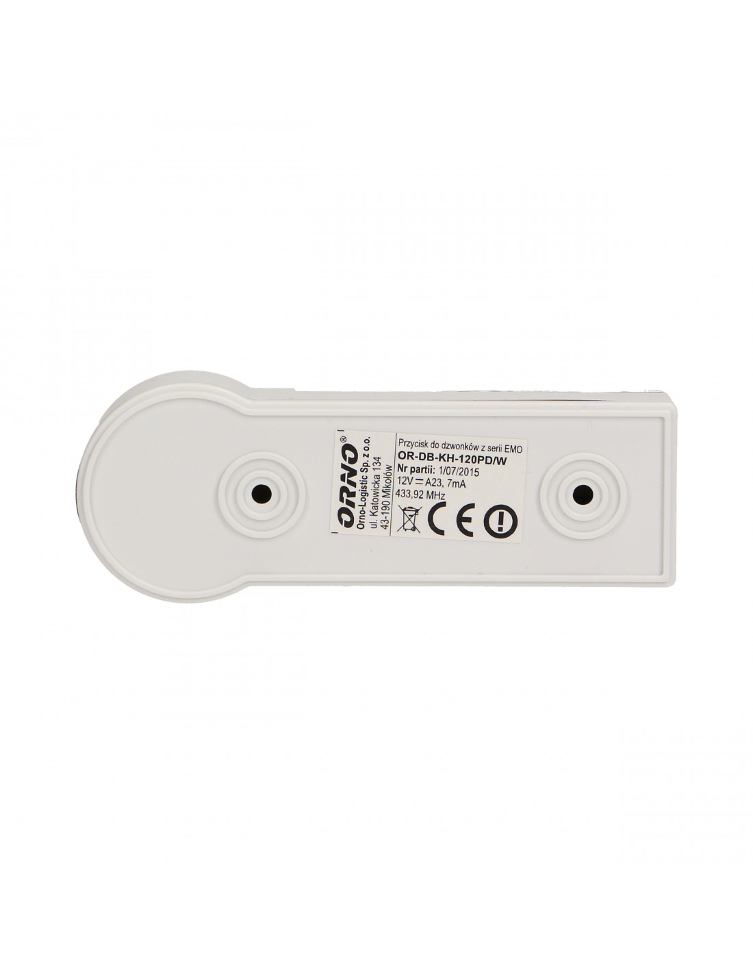Wodoodporny przycisk do rozbudowy dzwonków z serii EMO: OR-DB-KH-120, OR-DB-KH-121 oraz DISCO: OR-DB-KH-122, OR-DB-KH-123. Dostępne kolory: biały, srebrny.
