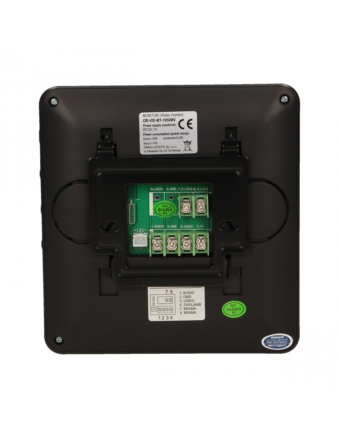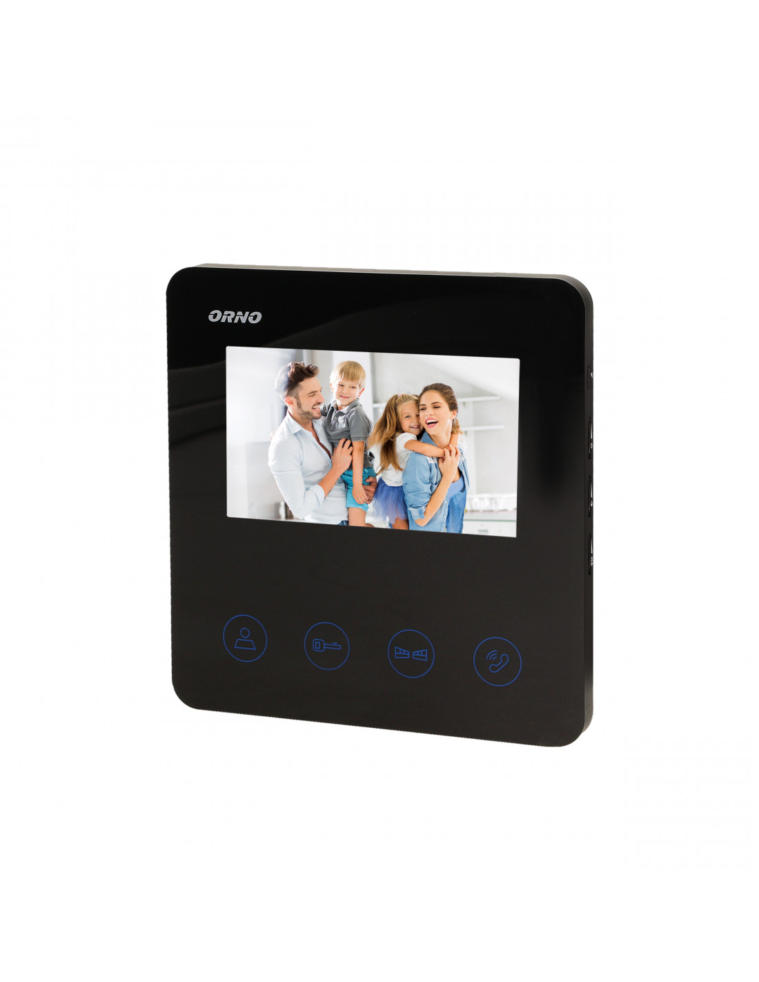 Wideo monitor do rozbudowy zestawów wideodomofonowych DUX, kolorowy, ultrapłaski, bezsłuchawkowy, LCD 4,3", dotykowy panel monitora z podświetlanymi przyciskami, płynna regulacja parametrów monitora (jasności i nasycenia koloru obrazu oraz głośności rozmowy), 16 dźwięków dzwonka do wyboru, dodatkowe sterowanie bramą, zasilanie prądem stałym z zasilacza do gniazdka 12V DC.
