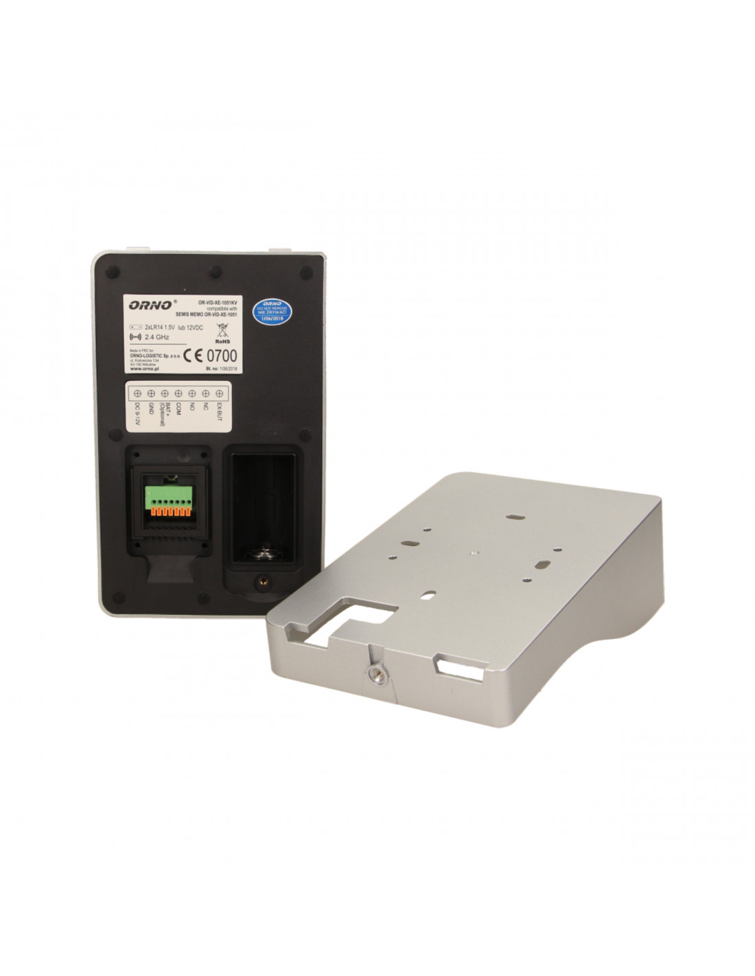 Wideo kamera do rozbudowy zestawu wideodomofonowego SEMIS MEMO, kolorowa kamera, sygnał alarmowy w przypadku usunięcia kamery, montaż natynkowy, oświetlenie super jasnymi diodami LED umożliwia widzenie w nocy, zasilanie z zasilacza 12V DC (brak w zestawie) lub bateryjne 2 × LR14 (brak w zestawie).