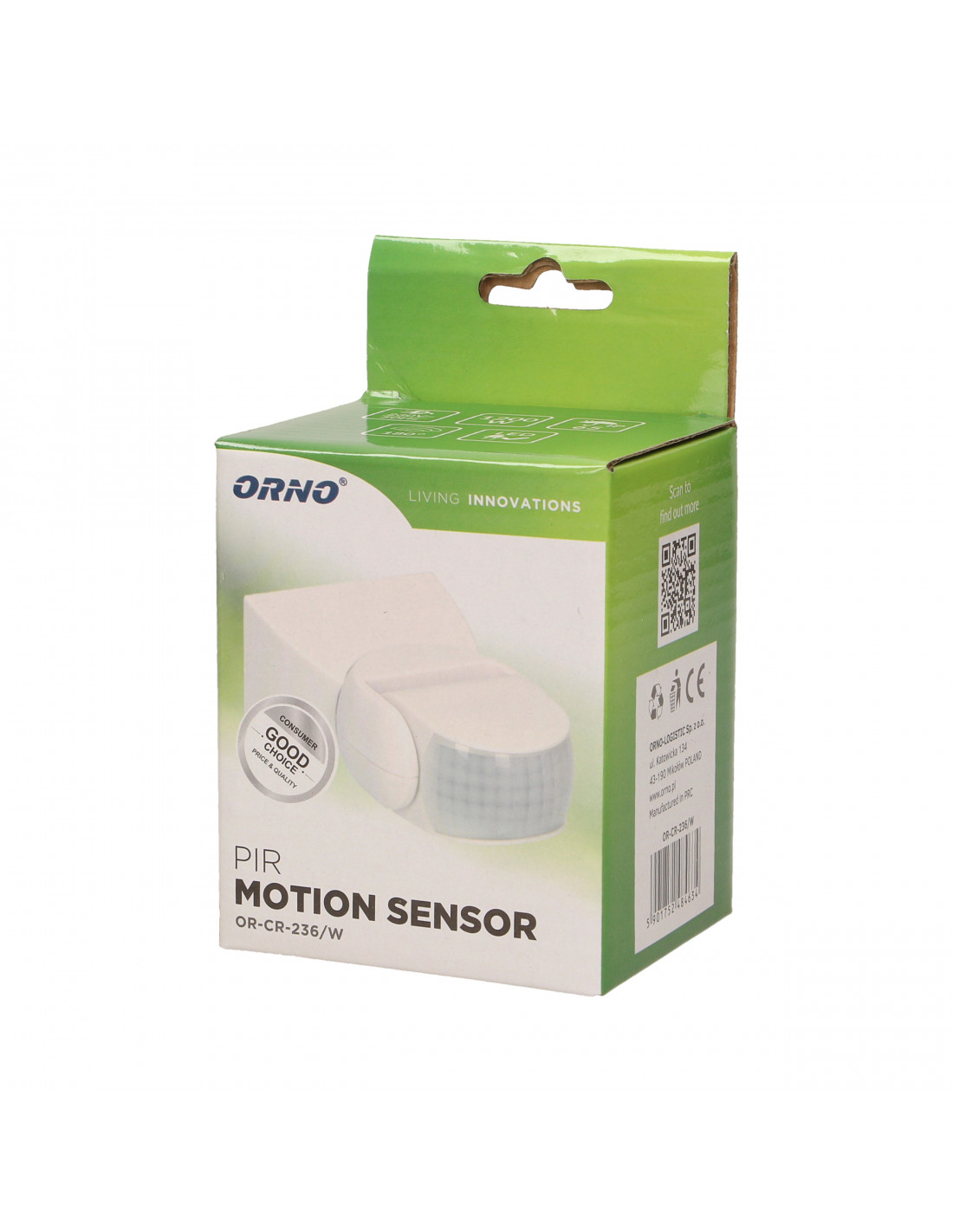 Czujnik ruchu 180st., regulacja pionowa i pozioma, IP65, 1200W, biały