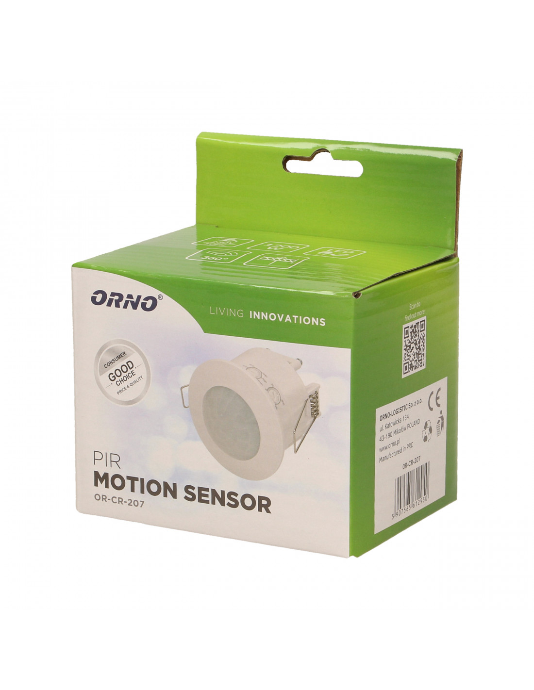 Czujnik ruchu 360 st. IP20, 2000W, 3 sensory, regulacja zasięgu Ø3m-20m, biały