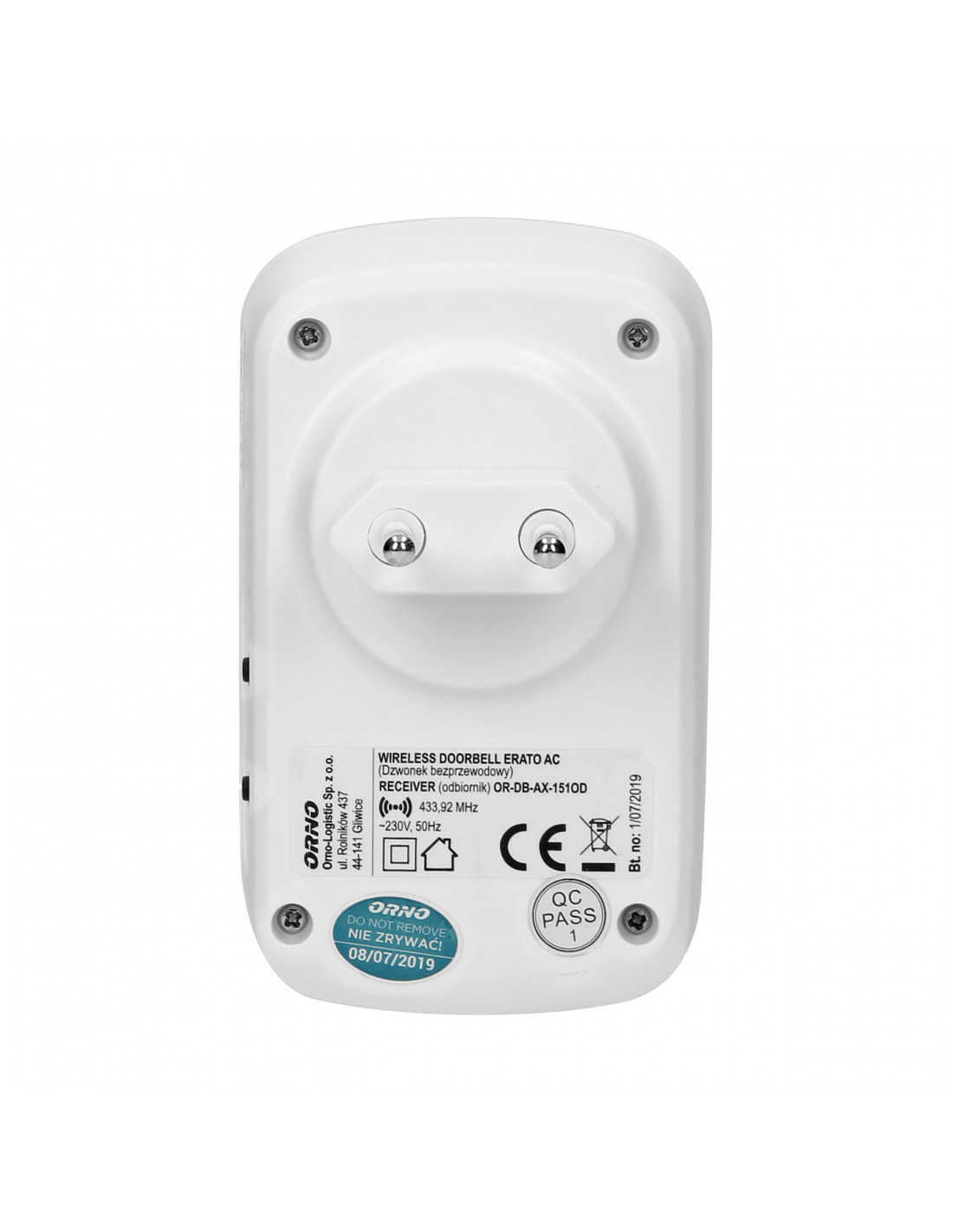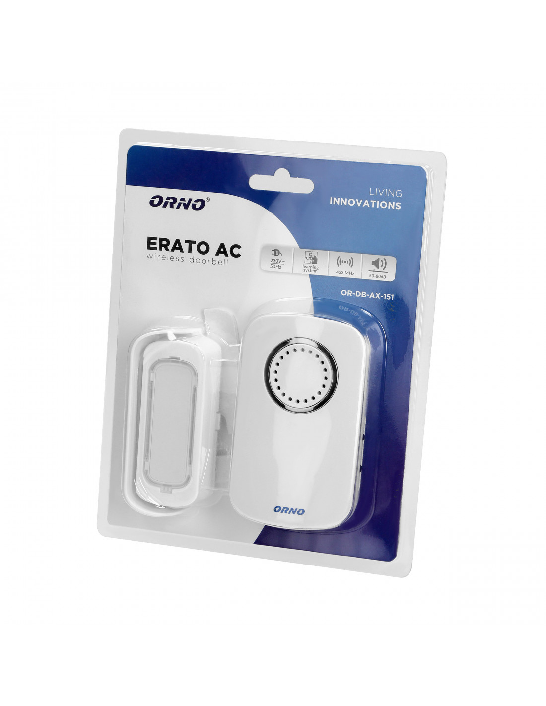 Dzwonek bezprzewodowy ERATO AC, sieciowy, learning system, 32 dźwięki, 100m