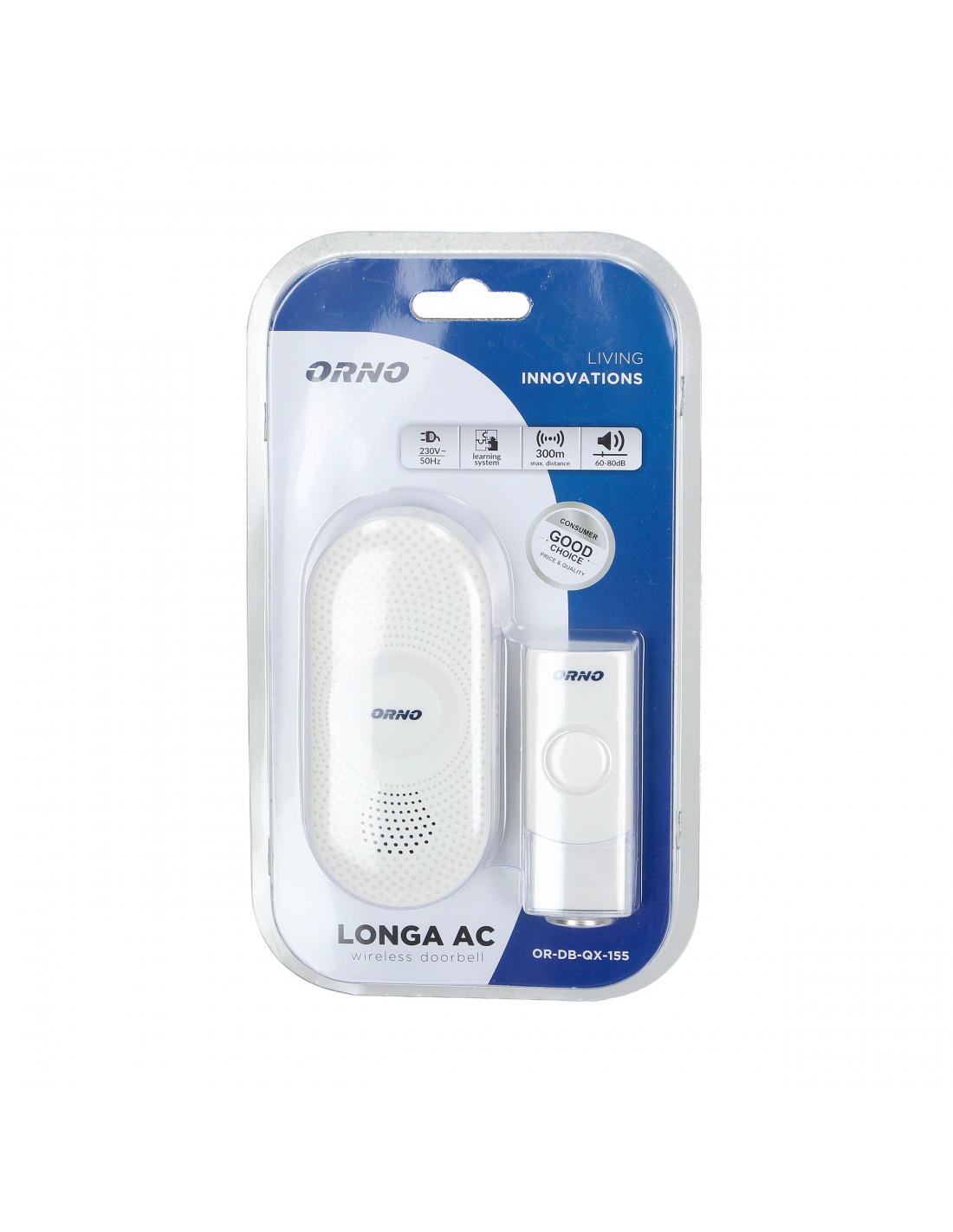 Dzwonek bezprzewodowy Longa AC, sieciowy, learning system, 36 dźwięków, zasięg działania 300m