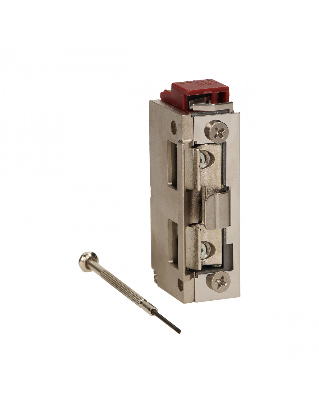 Elektrozaczep symetryczny z prowadnicą i sygnalizacją niedomkniętych drzwi, rewersyjny, MINI, NISKOPRĄDOWY 280mA dla...
