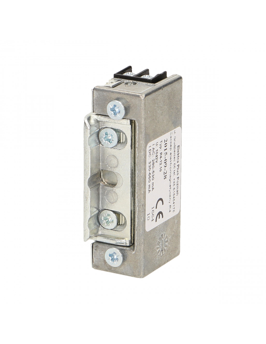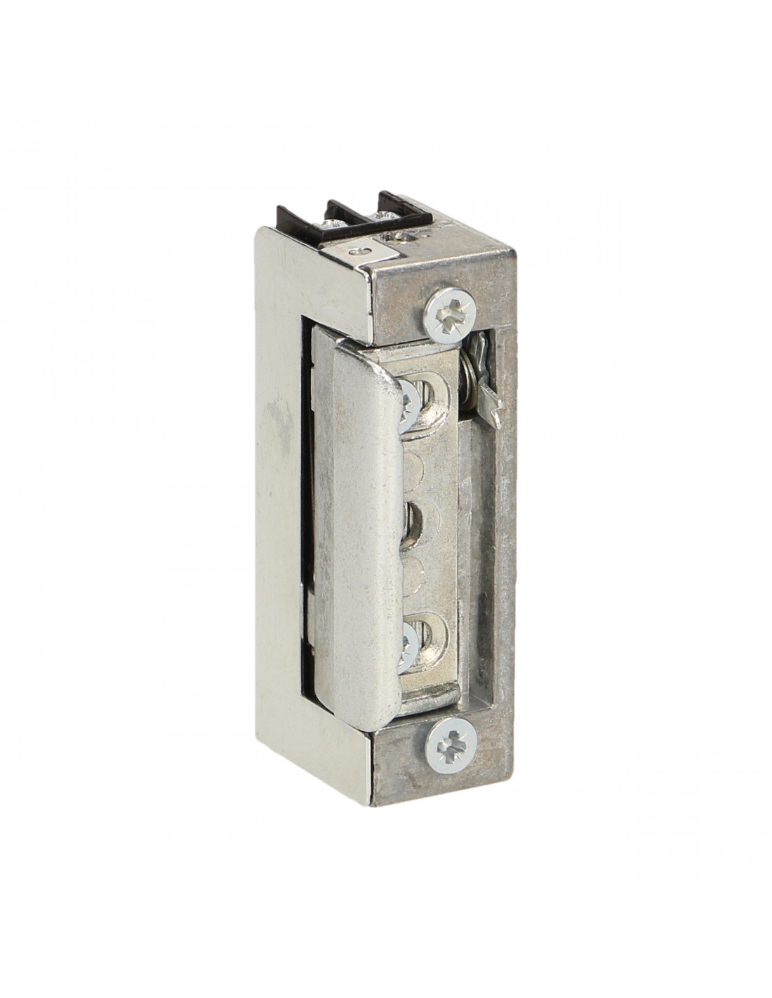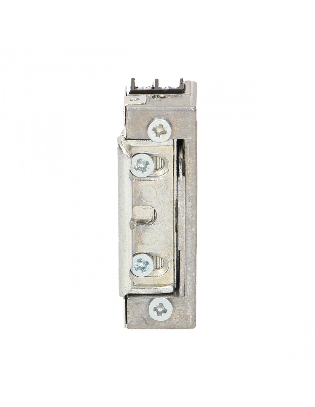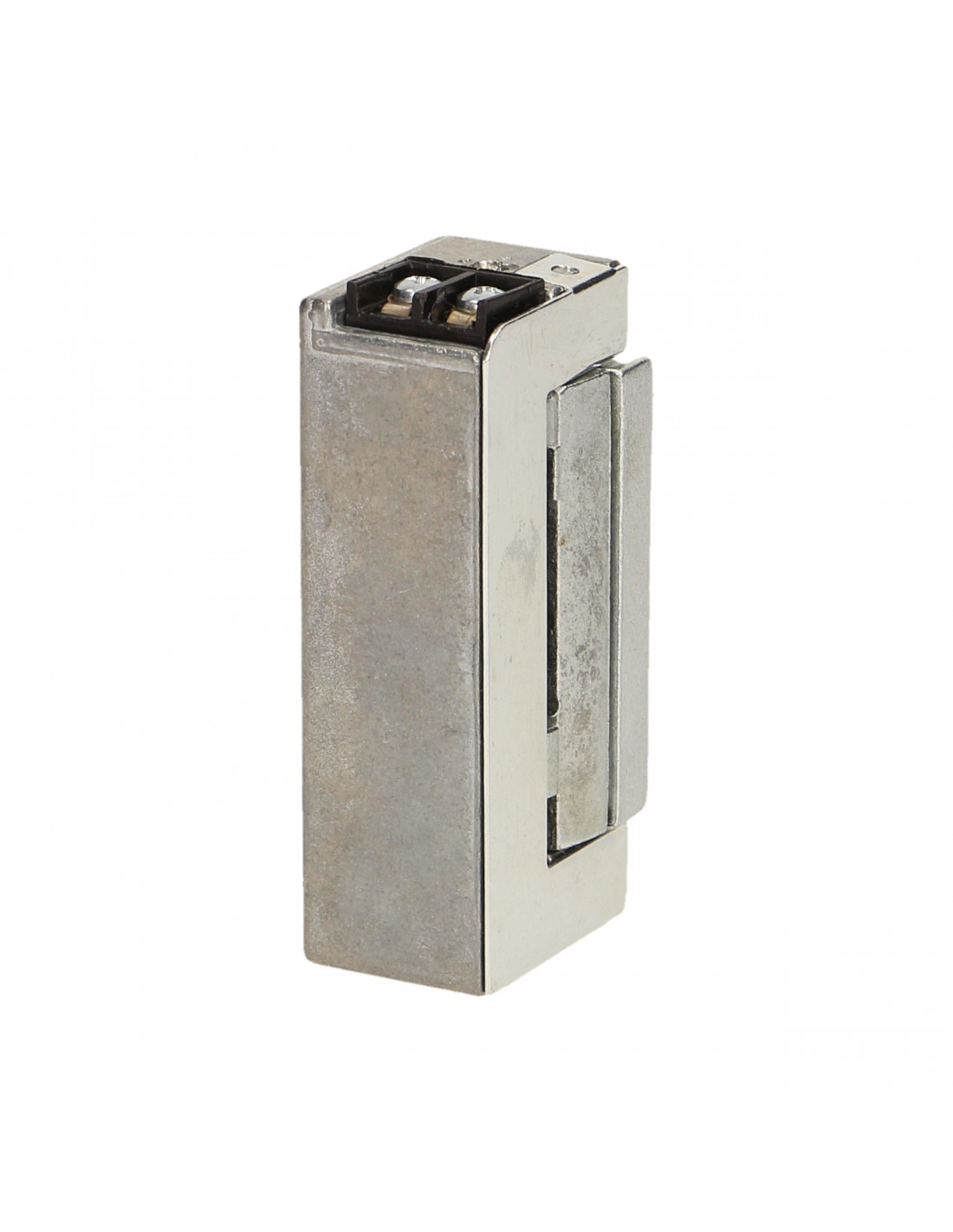 Elektrozaczep symetryczny R4-12.20 wyposażony jest w funkcję blokady zapadki – przesunięcie dźwigni blokady umożliwia otwarcie drzwi na stałe bez użycia impulsu elektrycznego.