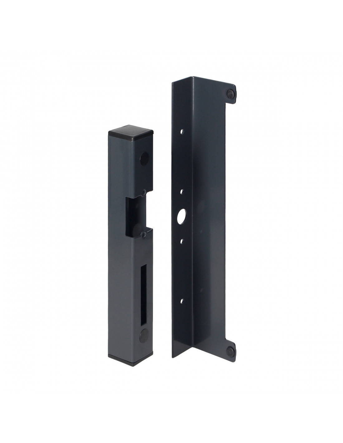 Kaseta dla elektrozaczepu wykonana z profilu 40x40mm ocynkowana i pomalowana proszkowo. Służy jako obudowa oraz odbój do bramki. Może być montowana na słupki murowane np. z cegły klinkierowej jak i na słupki metalowe. Dzięki dwudzielnej konstrukcji jest uniwersalna dla bramek otwieranych z prawej jak i z lewej strony. W tylnej części posiada otwór na przeprowadzenie instalacji elektrycznej do zasilenia elektrozaczepu jak i otwory montażowe. Z góry i od dołu kaseta zaślepiona jest zatyczkami plastikowymi.