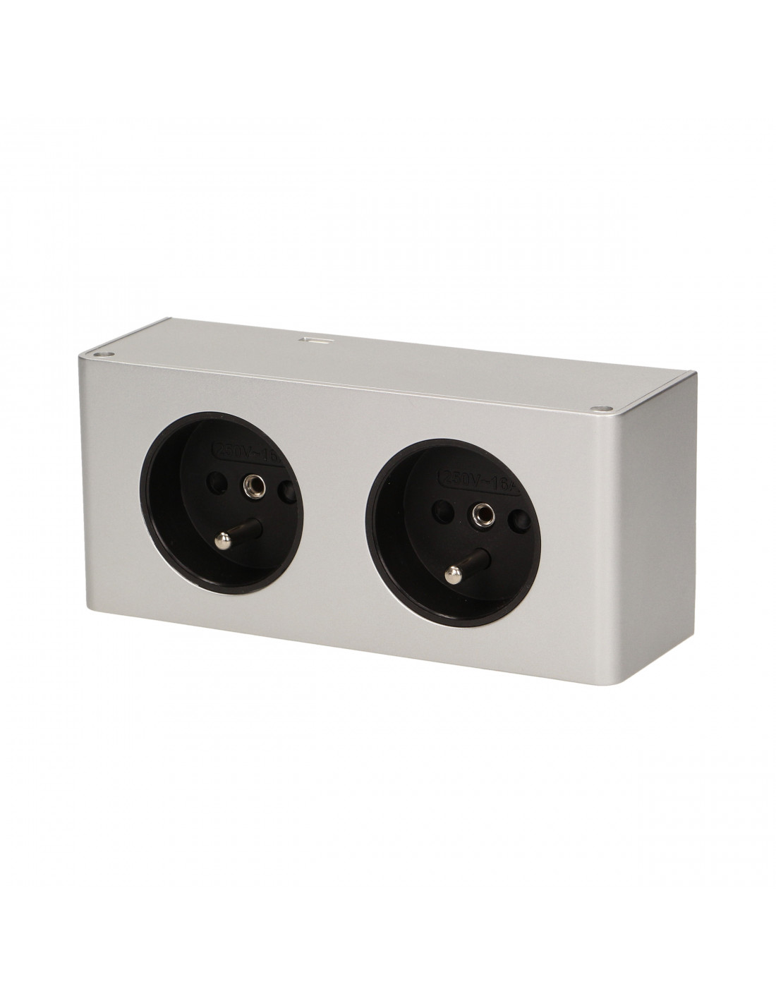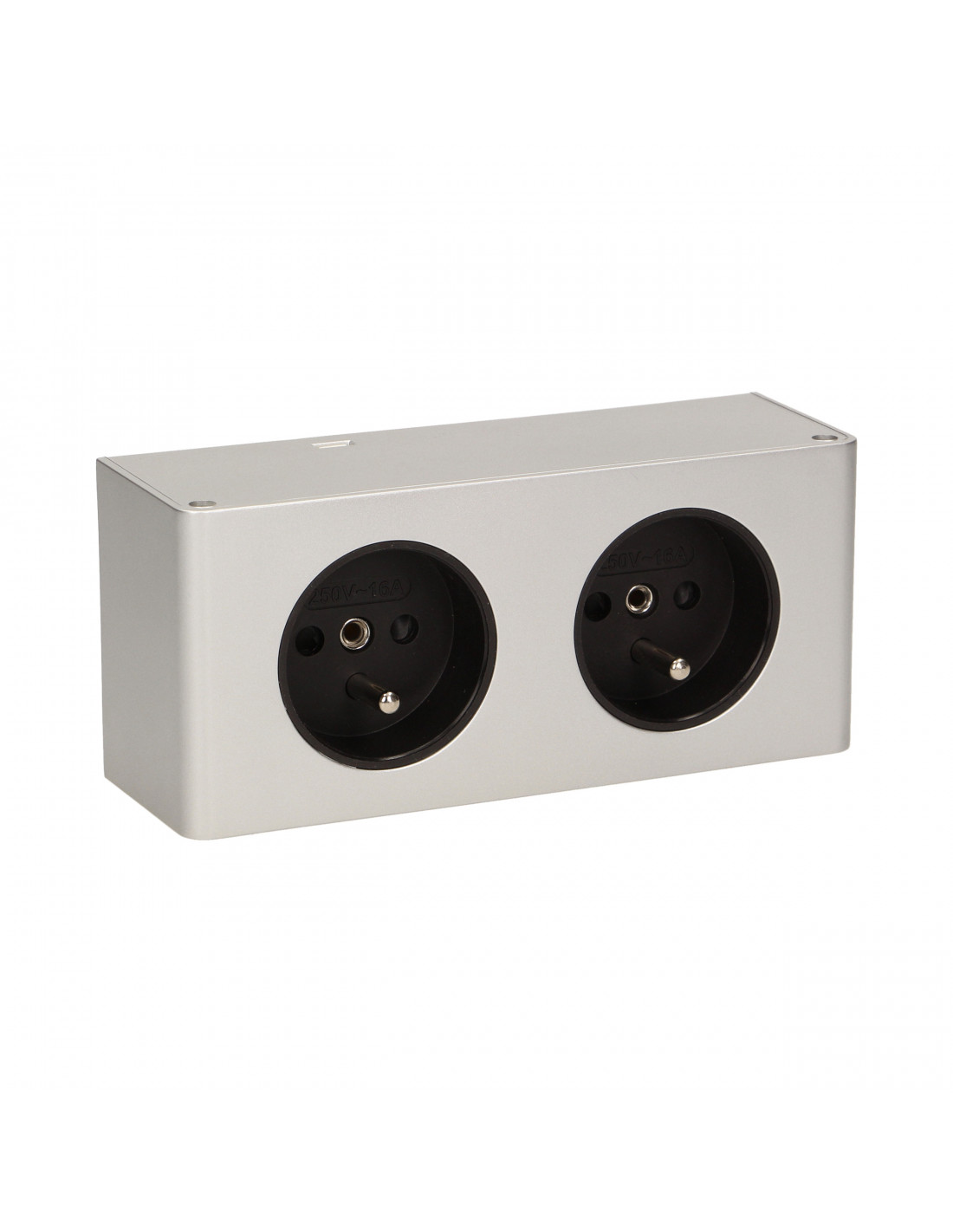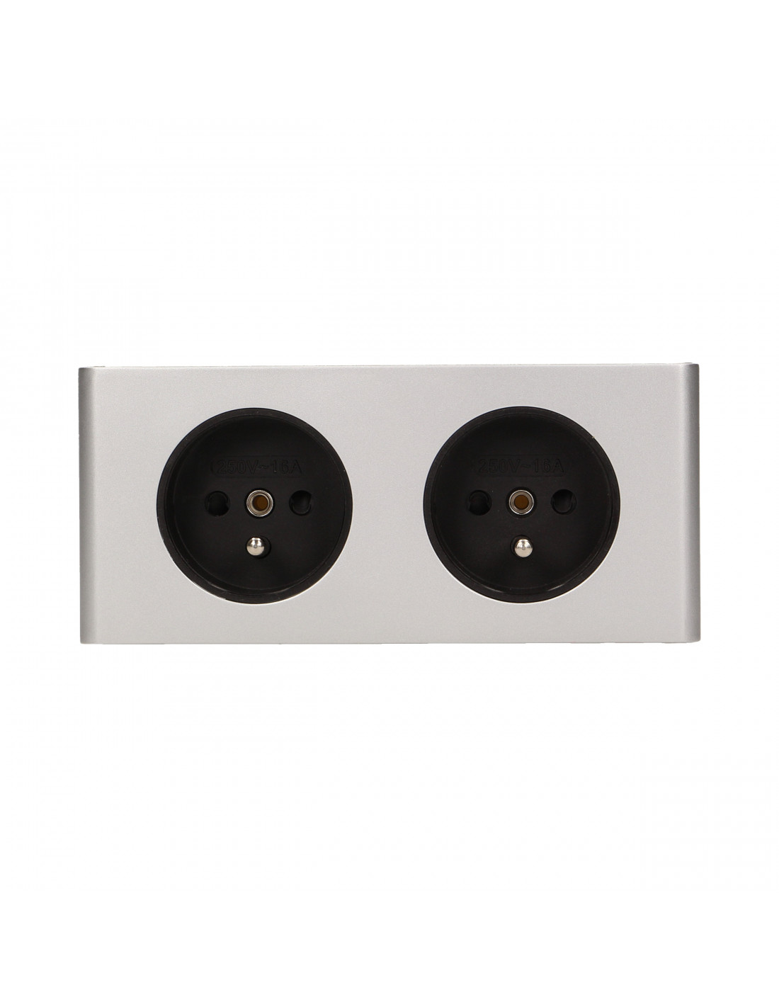 Gniazdo meblowe bez wyłącznika,  2x2P+Z  srebrne