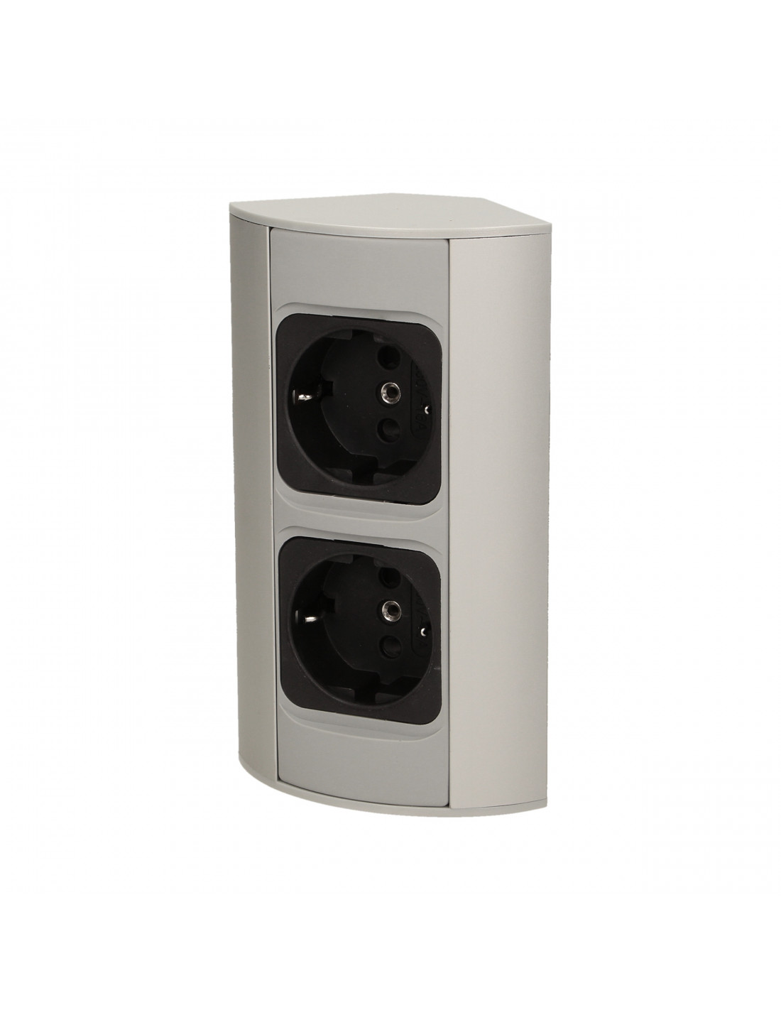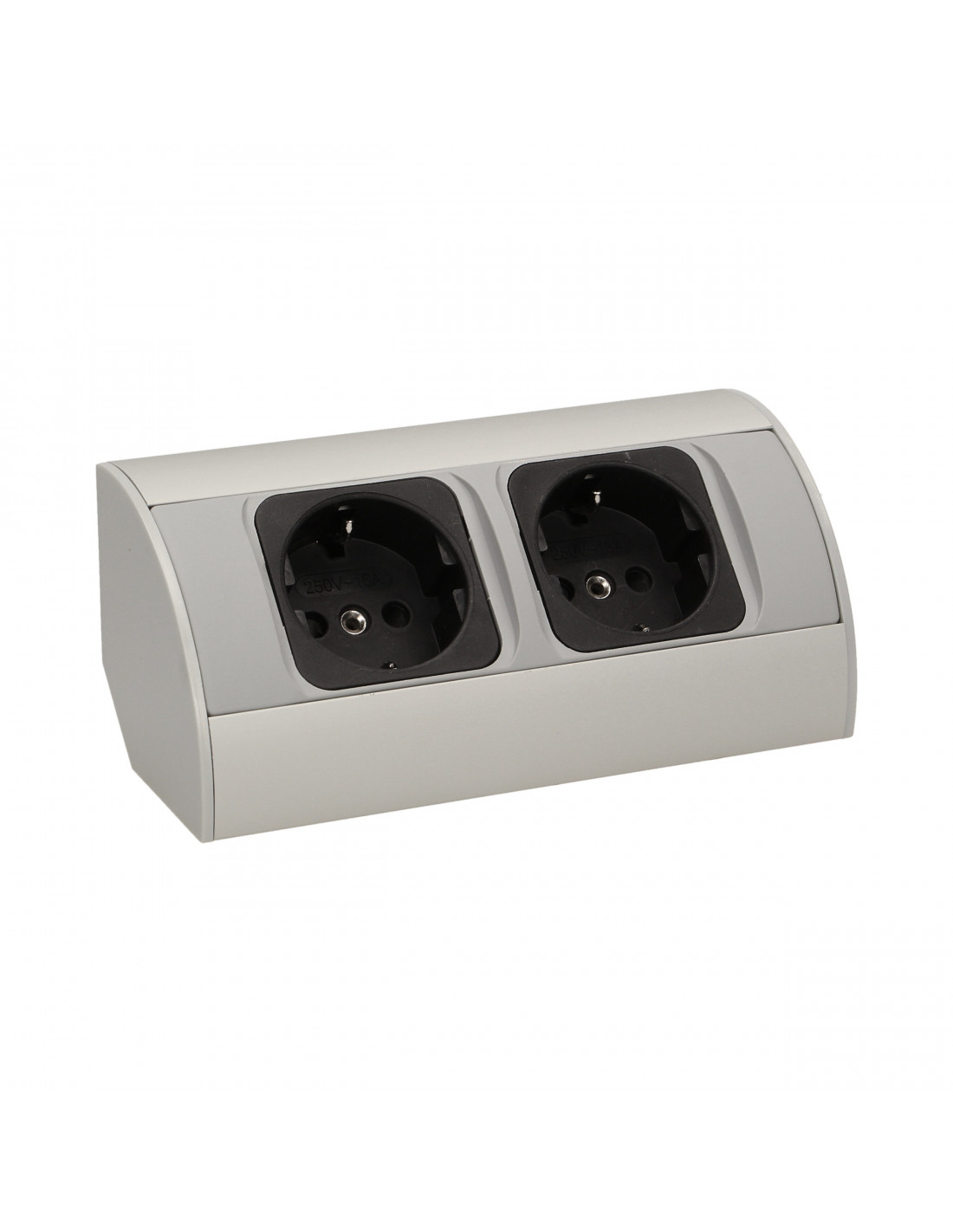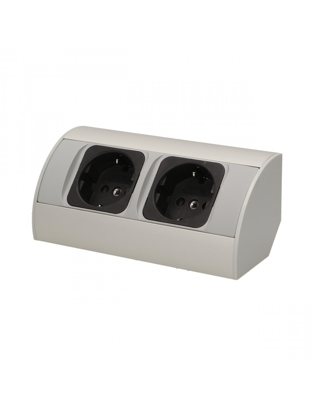 Zestaw dwóch gniazd sieciowych z uziemieniem i przesłonami torów prądowych, idealne, do montażu w szafkach, gablotach i witrynach.