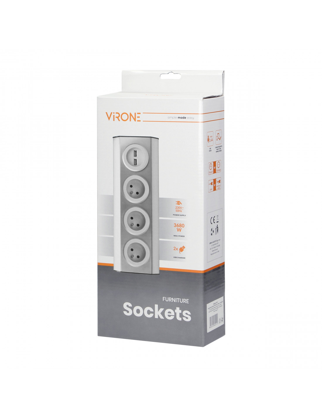 Gniazdo meblowe, kuchenne z ładowarką USB, montowane na rzepy z przewodem 1,5m -...