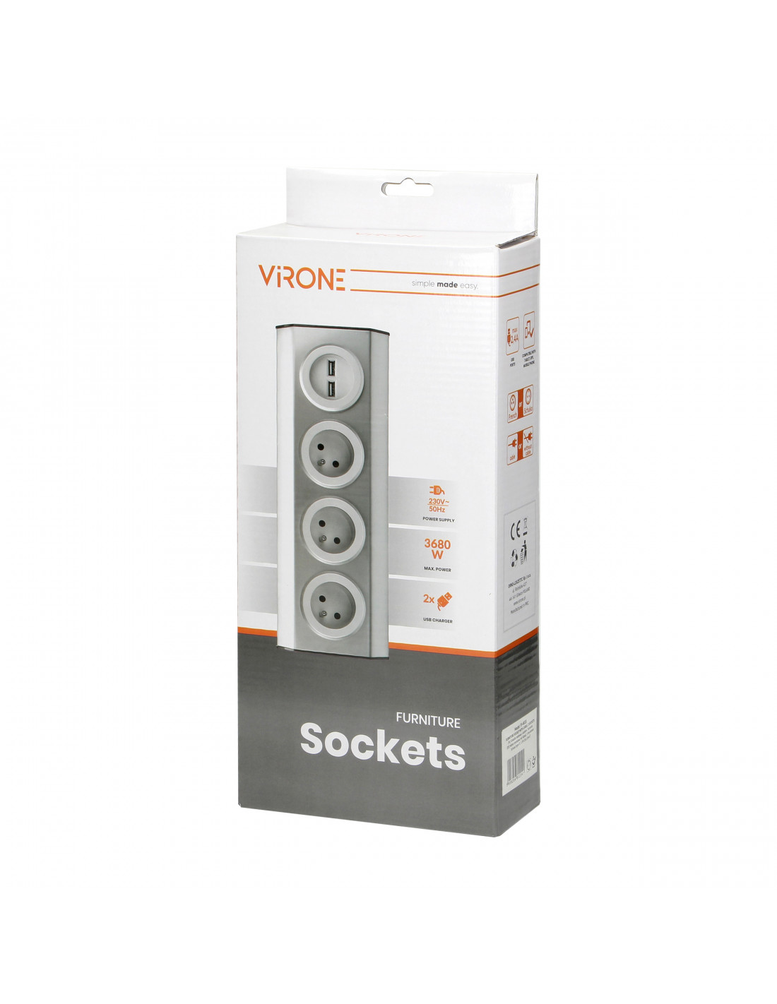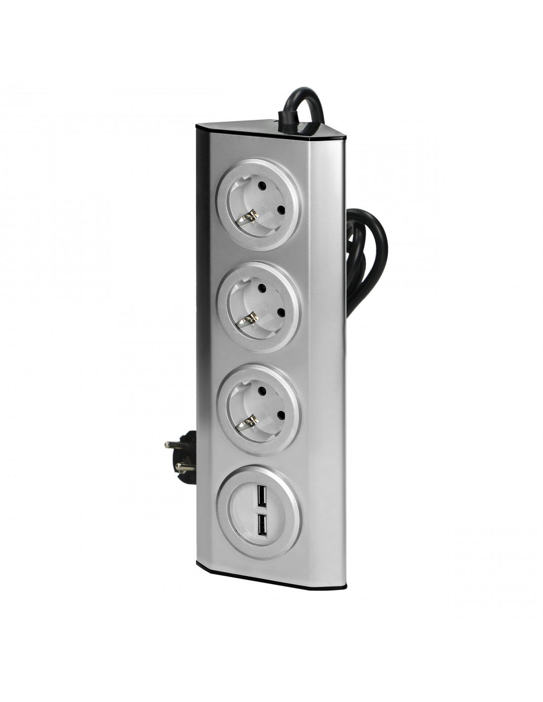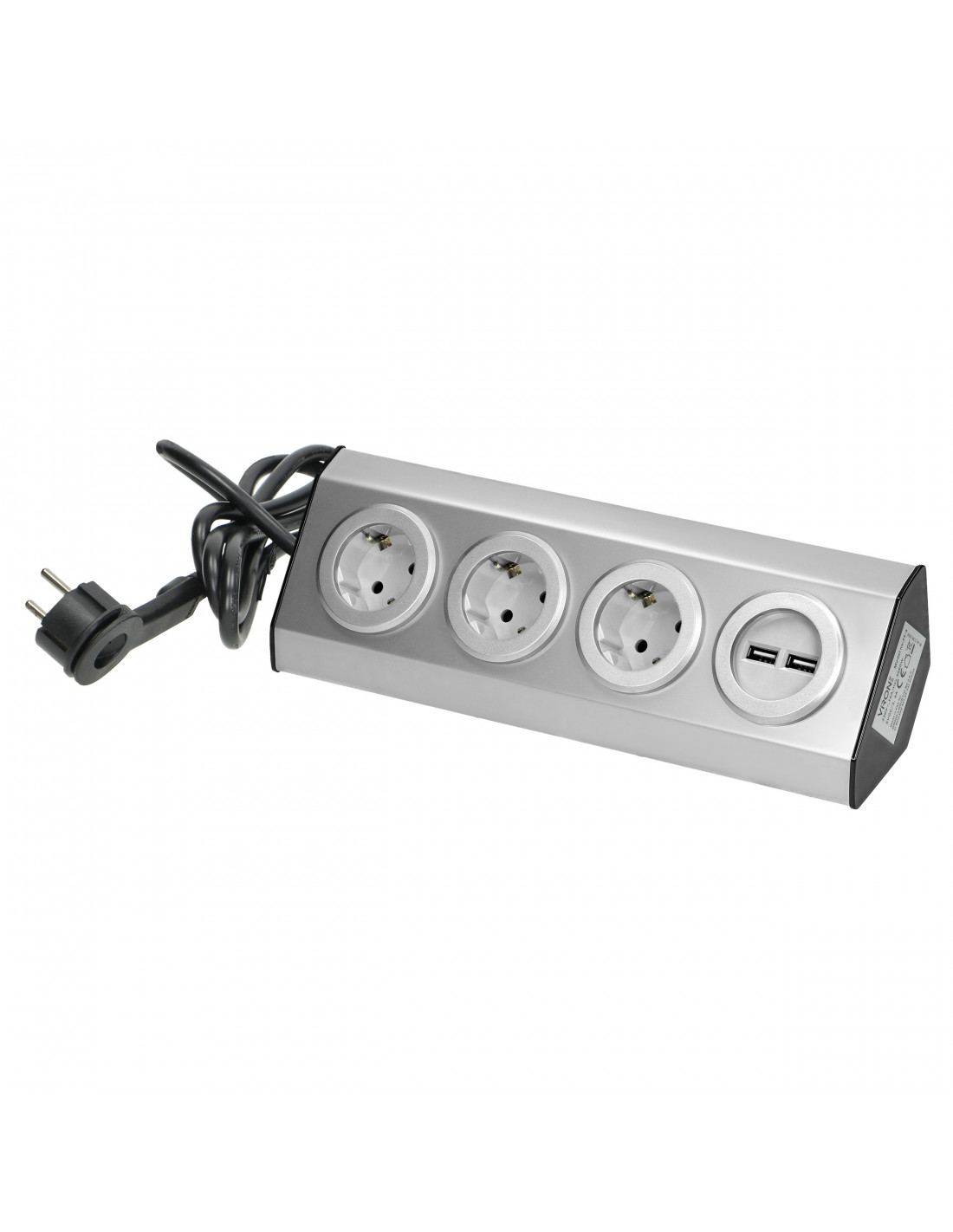 Gniazdo meblowe, kuchenne montowane na rzepy 4x2P+Z INOX z przewodem 1,5m.