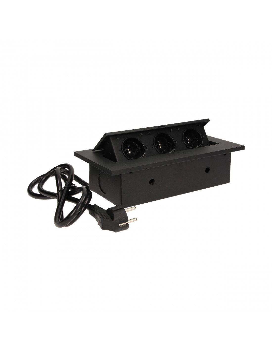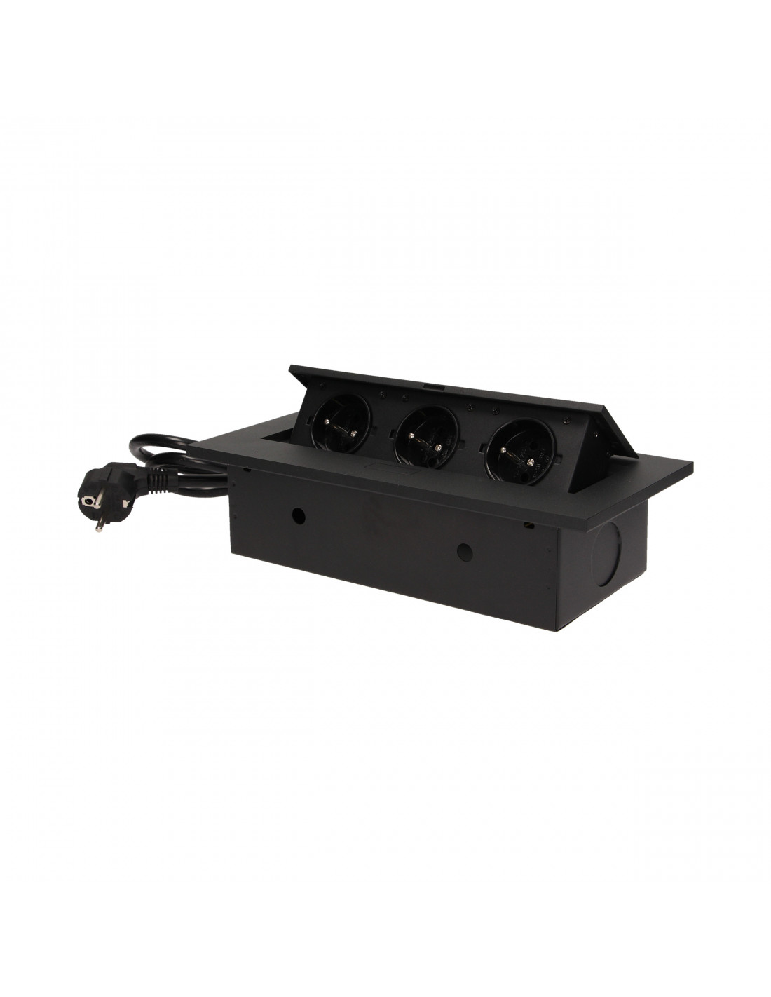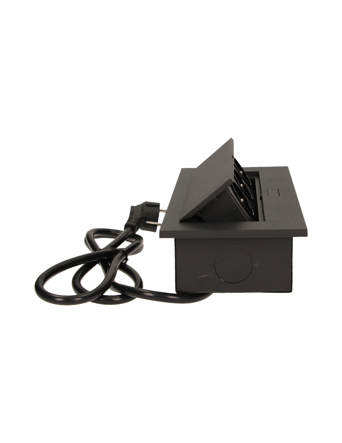 Gniazdo meblowe Ø8cm wysuwane z blatu z ładowarką USB i przewodem 1,8m, 3x2P+Z, 2xUSB