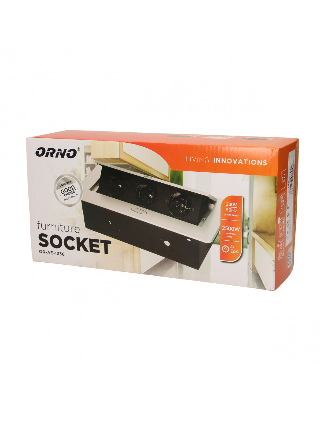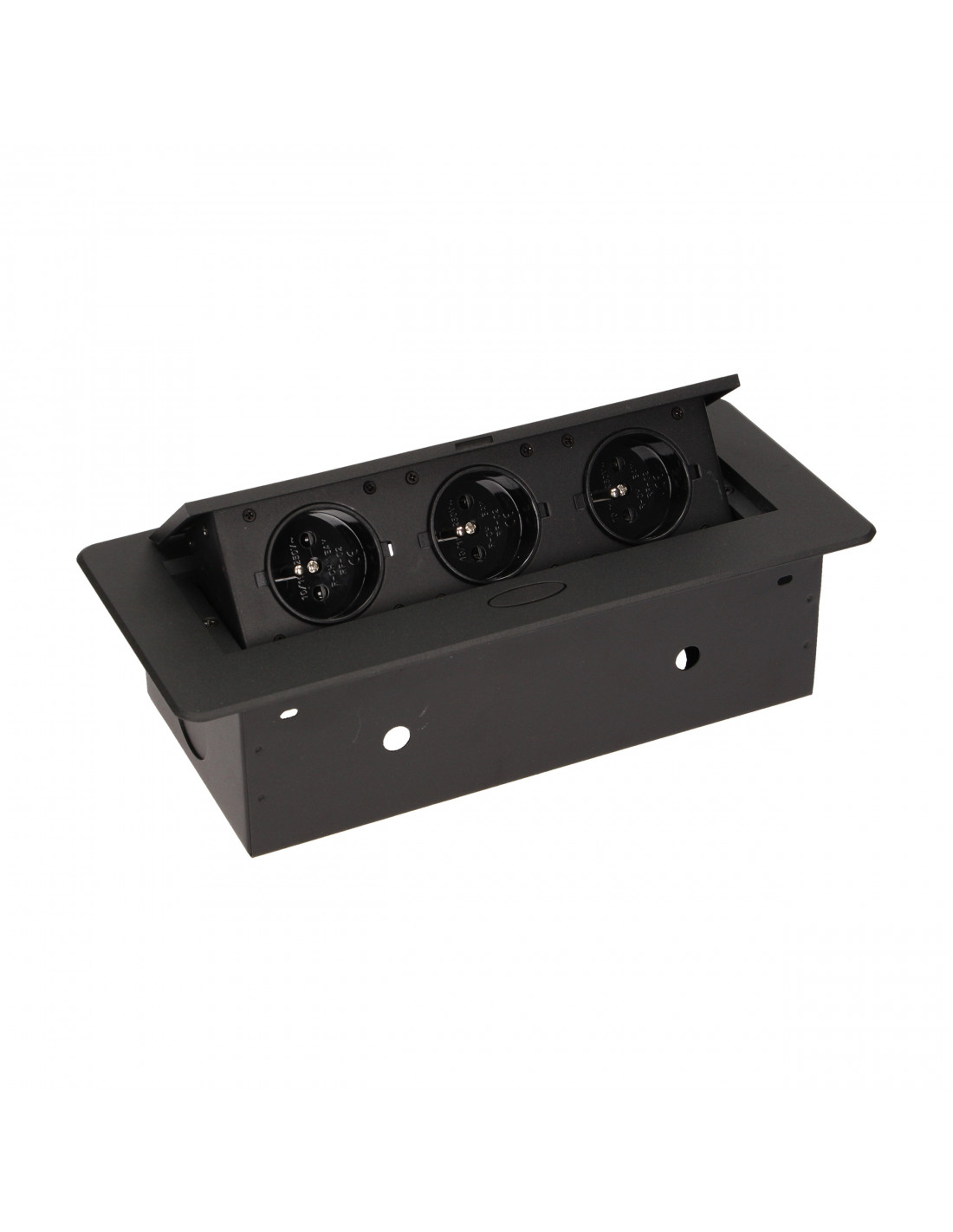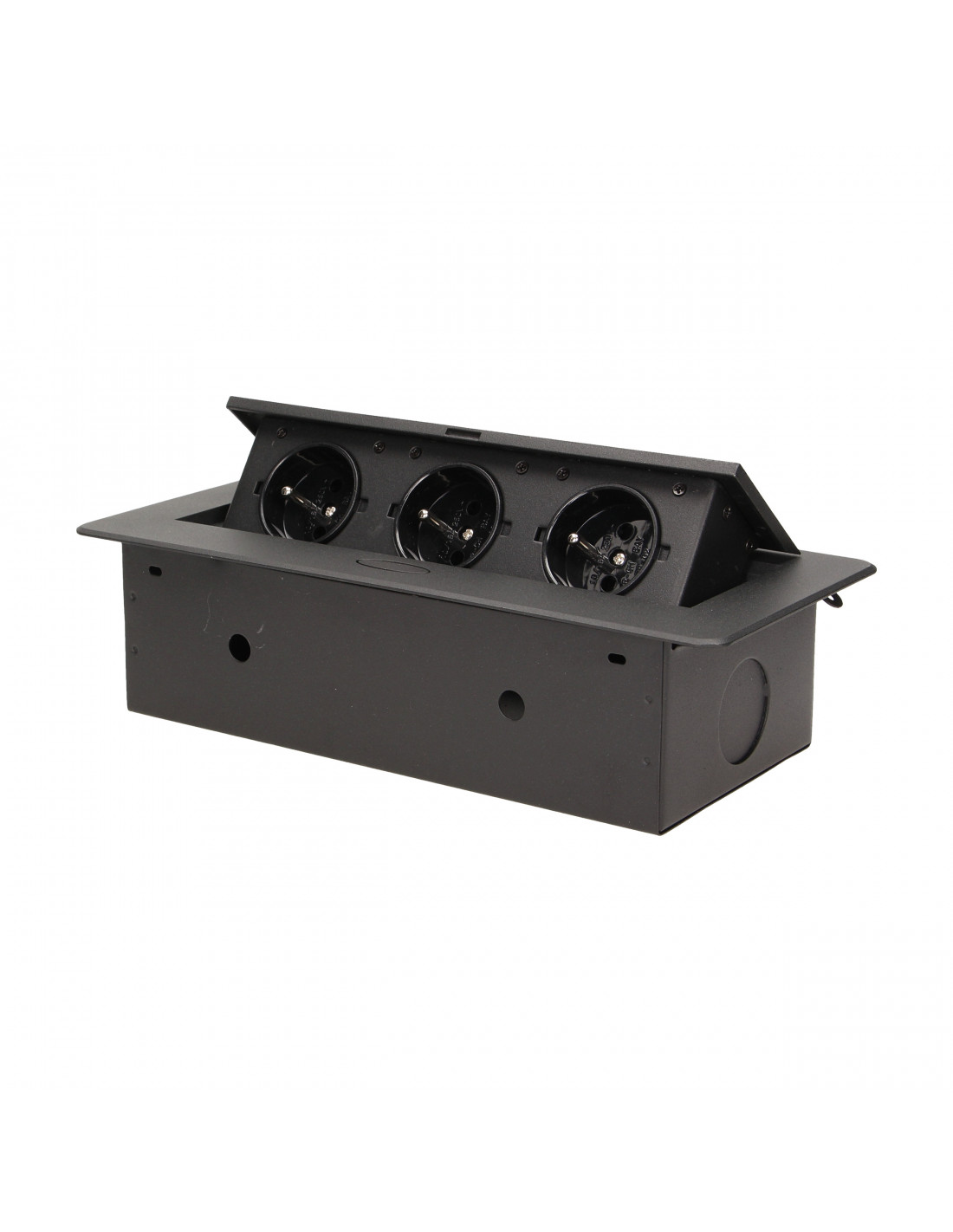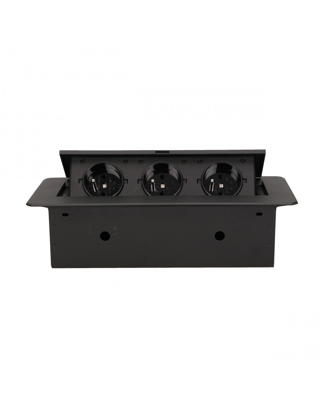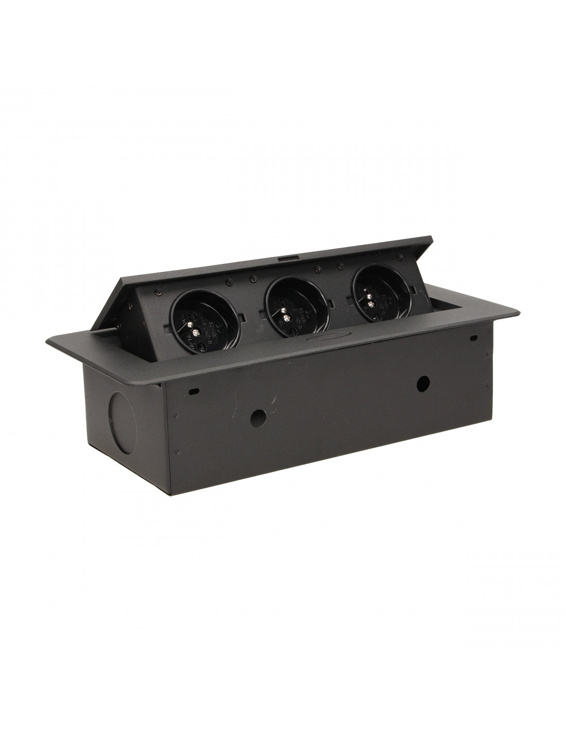 Gniazdo meblowe wpuszczane w blat z płaskim rantem, 3x2P+Z (Schuko),srebrne