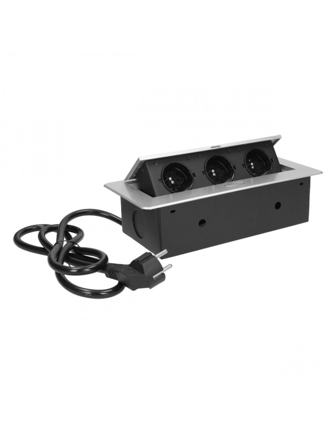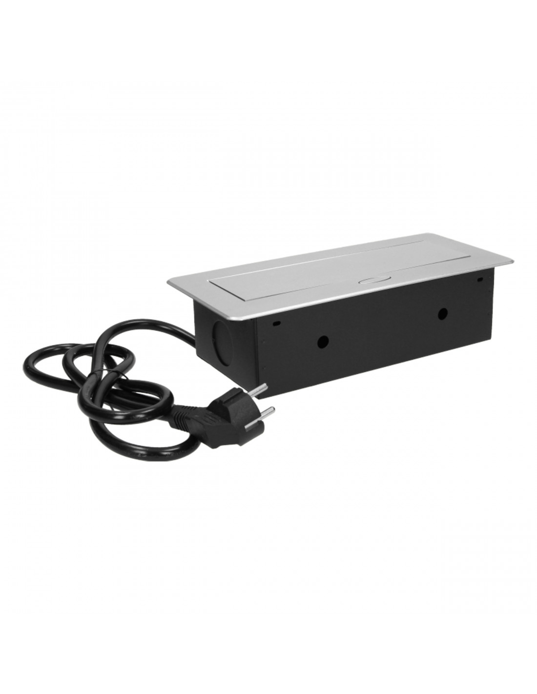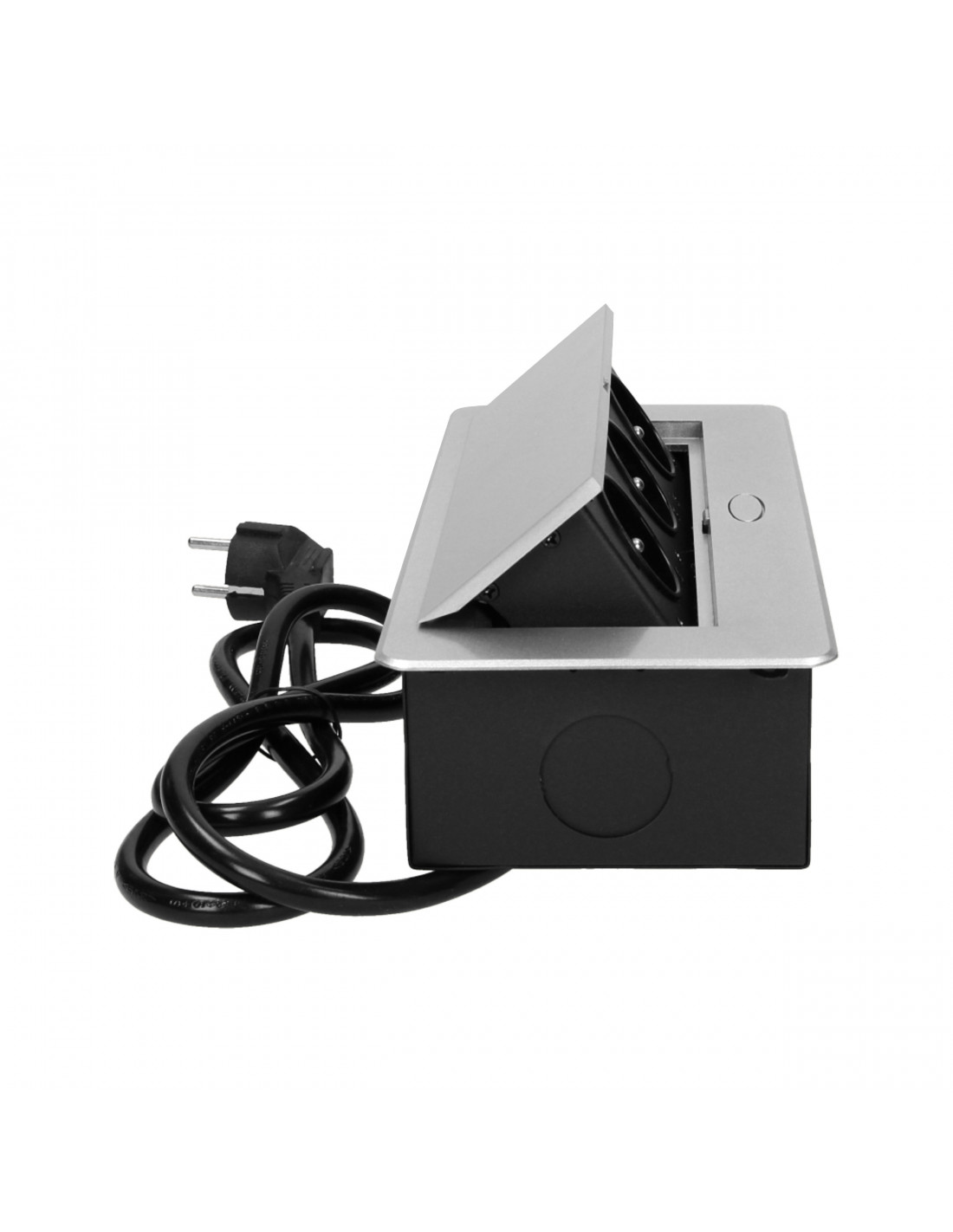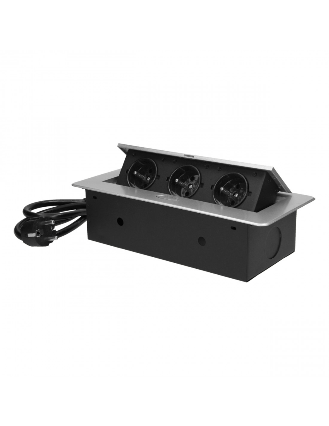 Gniazdo meblowe wpuszczane w blat z płaskim frezowanym rantem oraz elektrycznym...