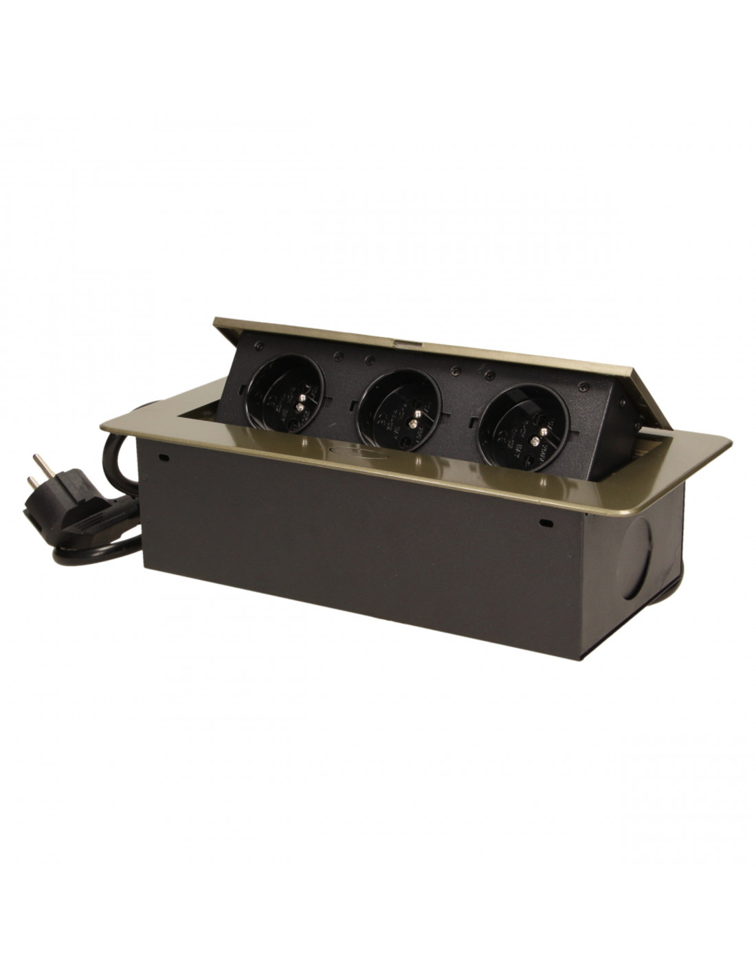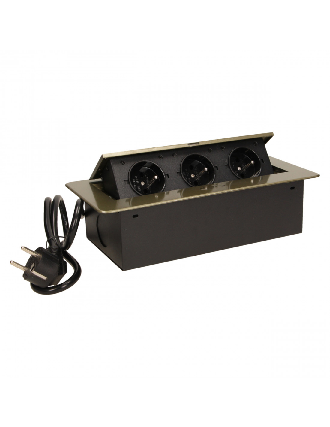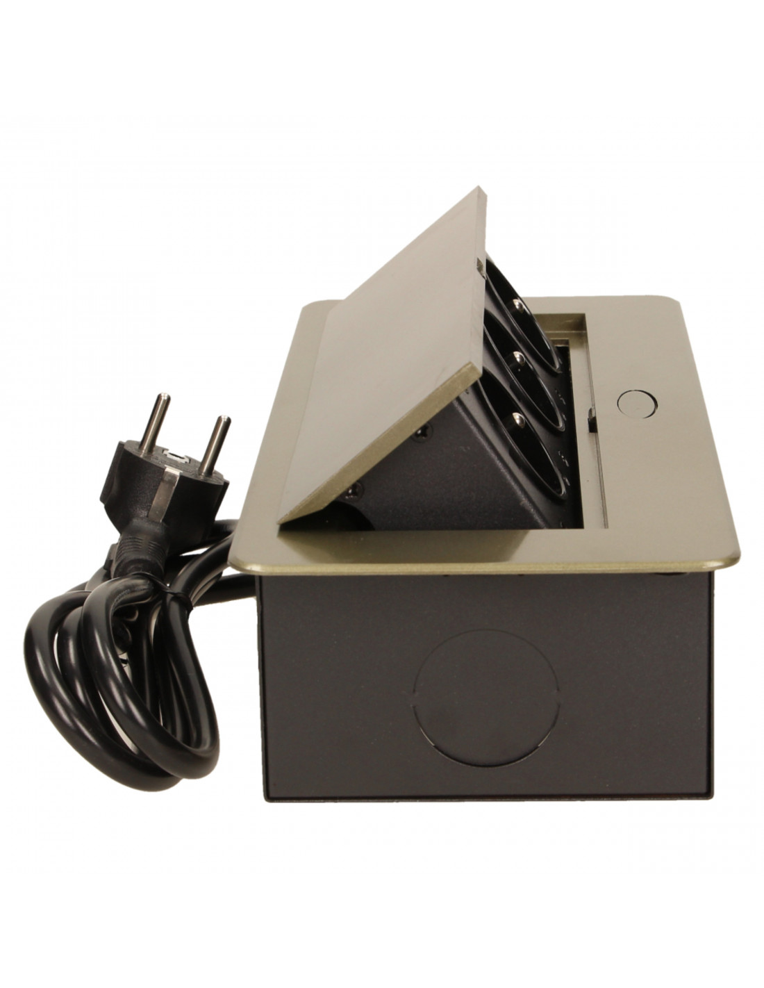Gniazdo meblowe Ø10cm wysuwane z blatu z ładowarką USB i przewodem 1,5m, 3x2P+Z, 2xUSB,...