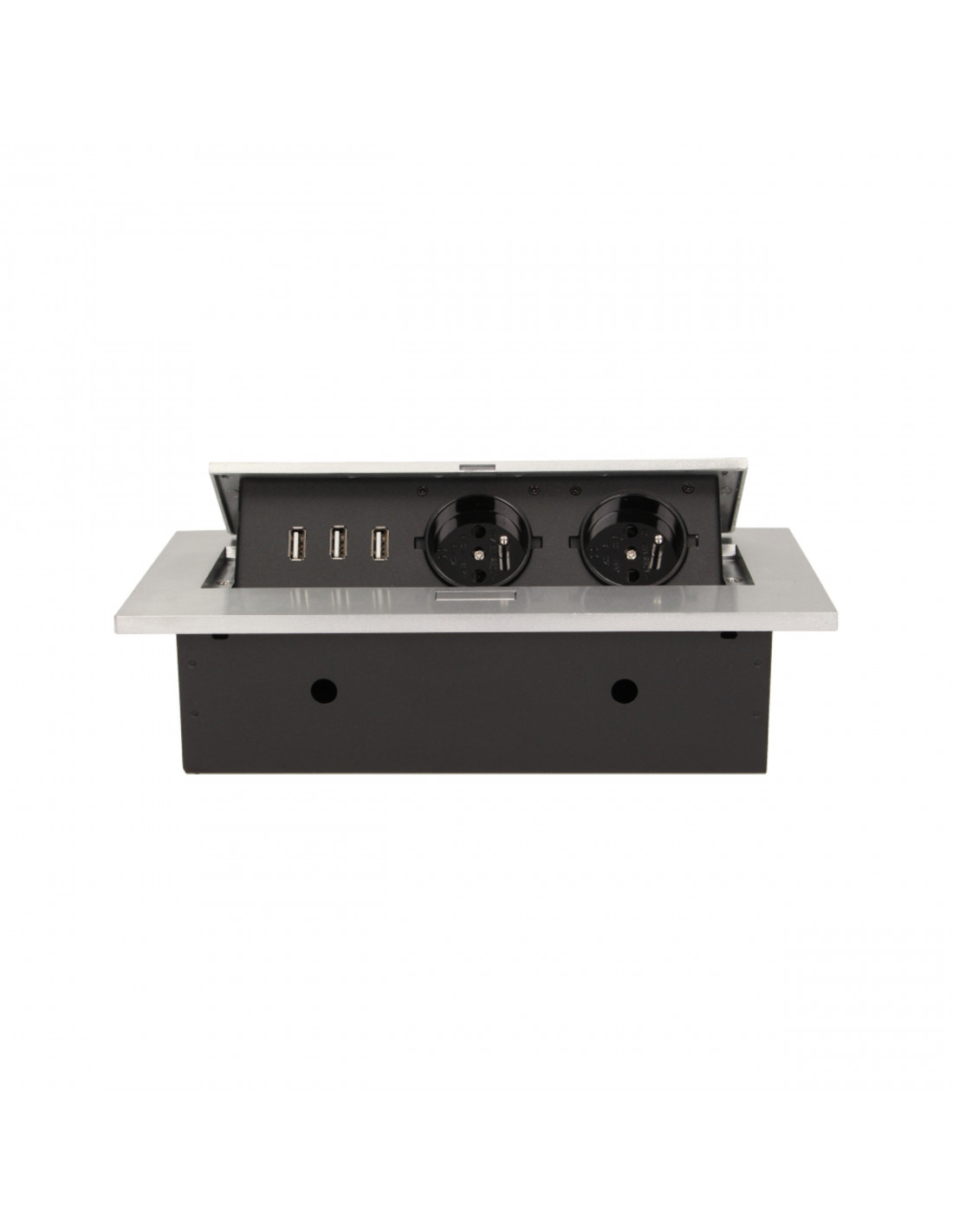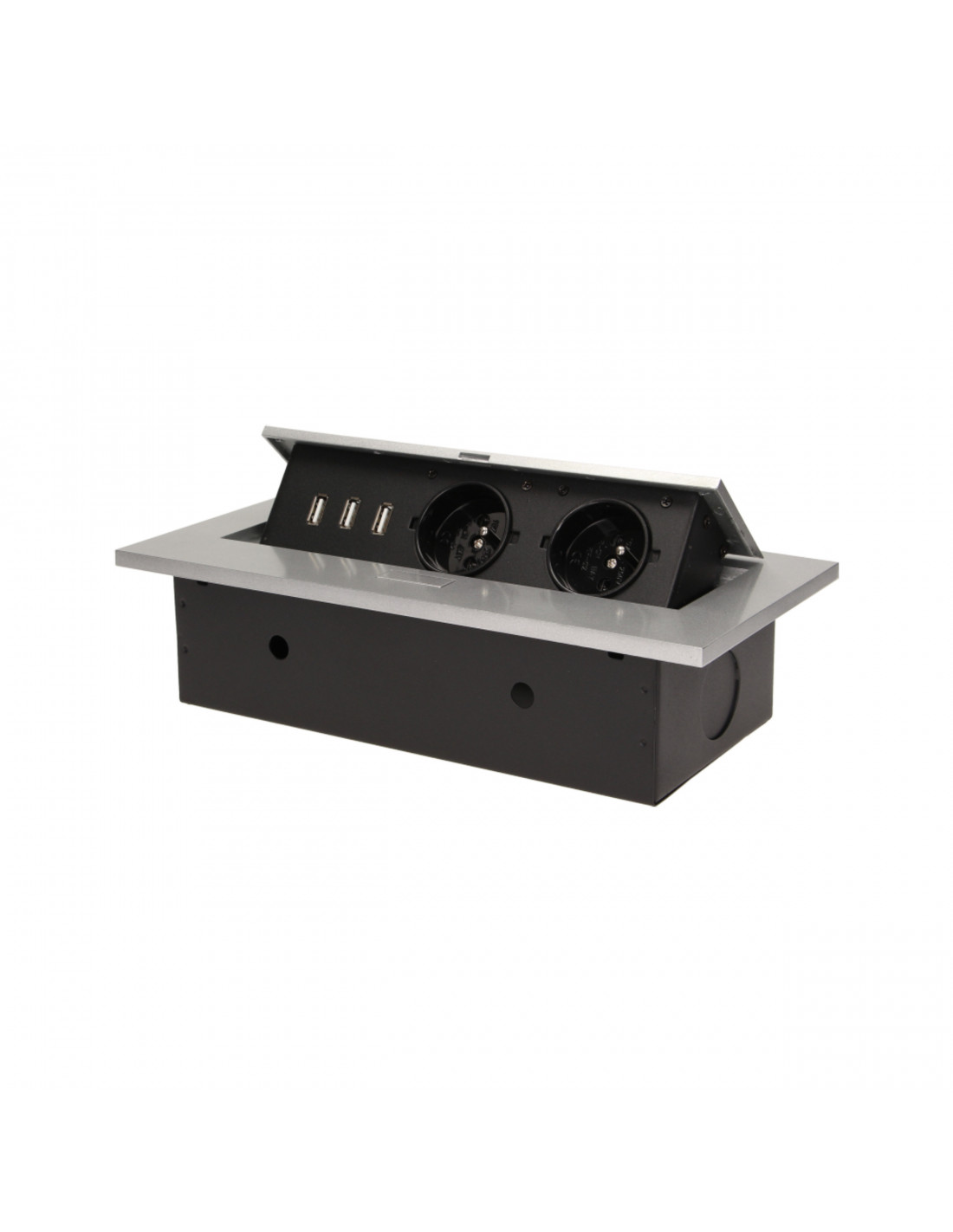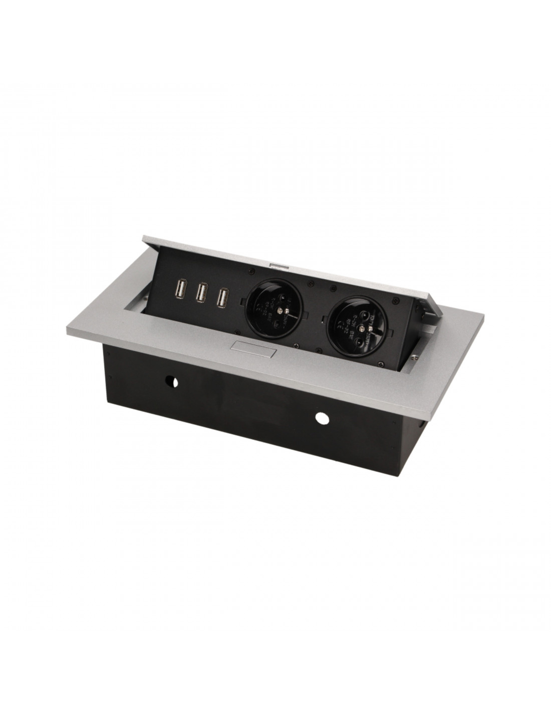 Gniazdo meblowe wpuszczane w blat z grubym rantem, 3x2P+Z, srebrne