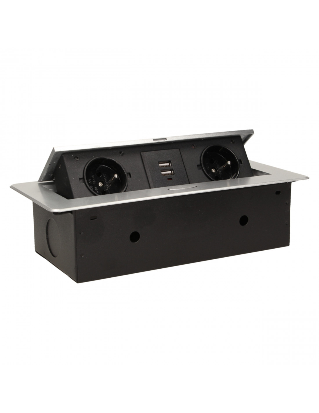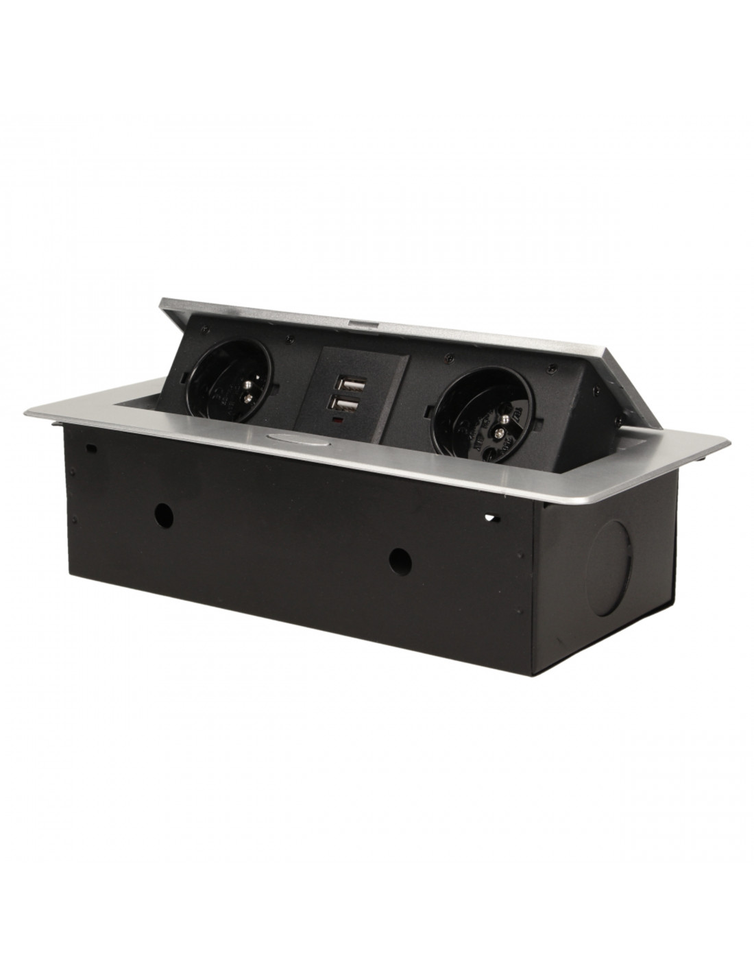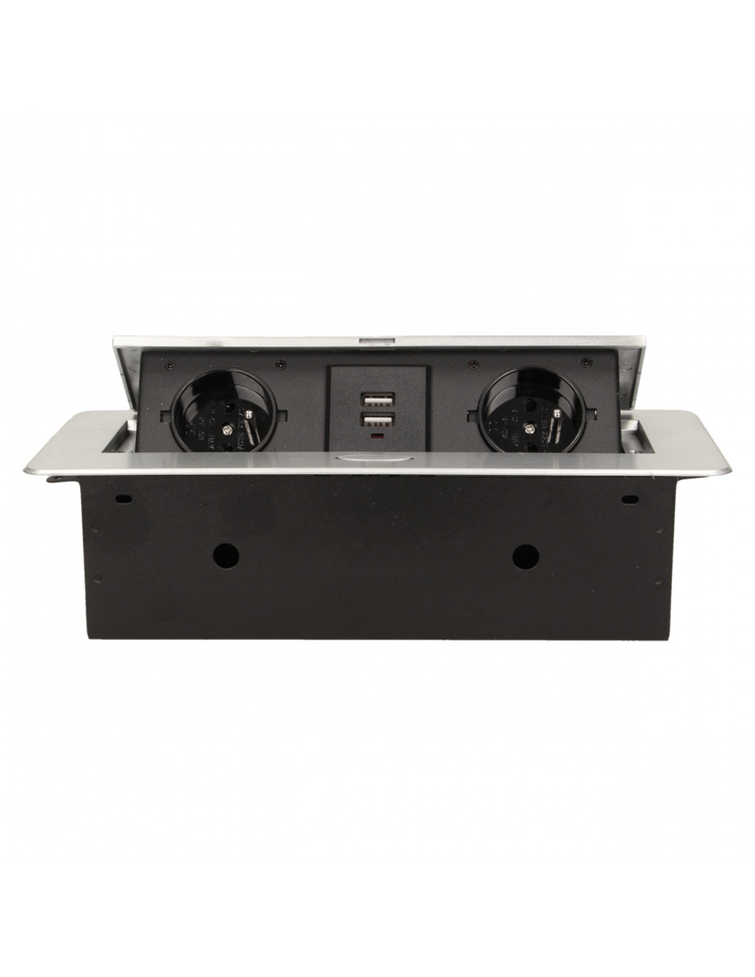 Gniazdo meblowe Ø6cm wysuwane z blatu z blokadą i przewodem 1,8m, 3x2P+Z (Schuko), czarne