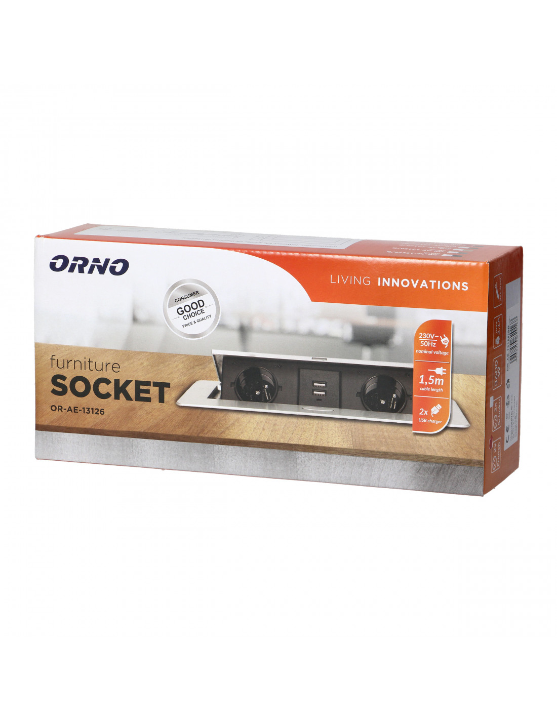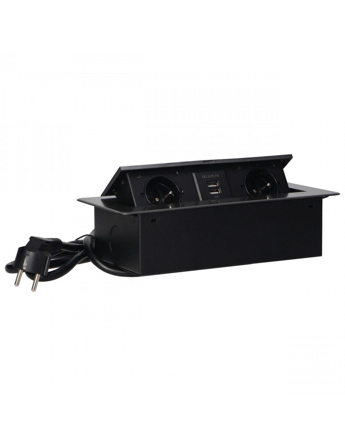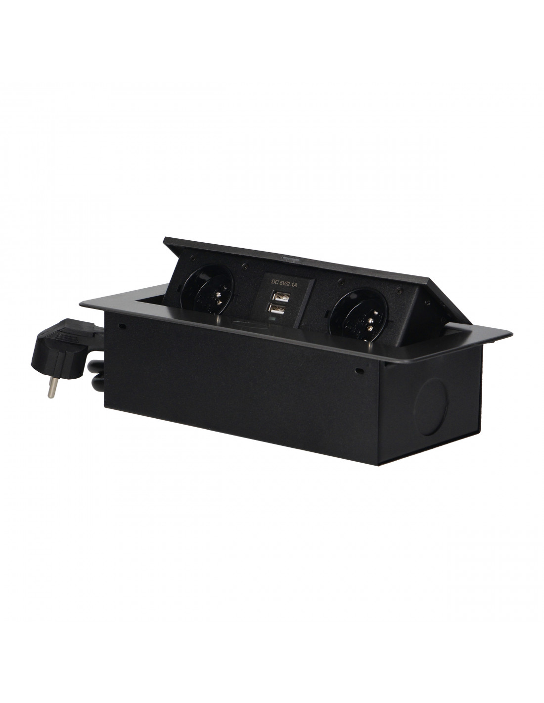 Gniazdo meblowe Ø6cm wysuwane z blatu z ładowarką USB, blokadą i przewodem 1,8m,...
