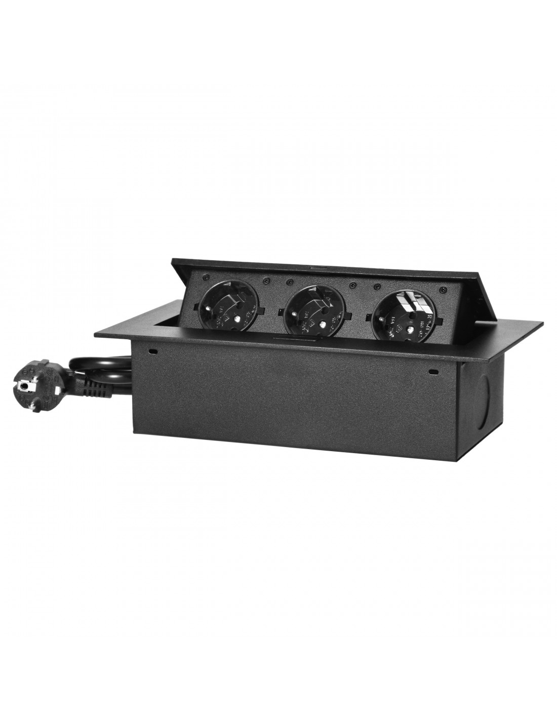 Gniazdo meblowe wpuszczane w blat z płaskim, frezowanym rantem, 3x2P+Z, złote