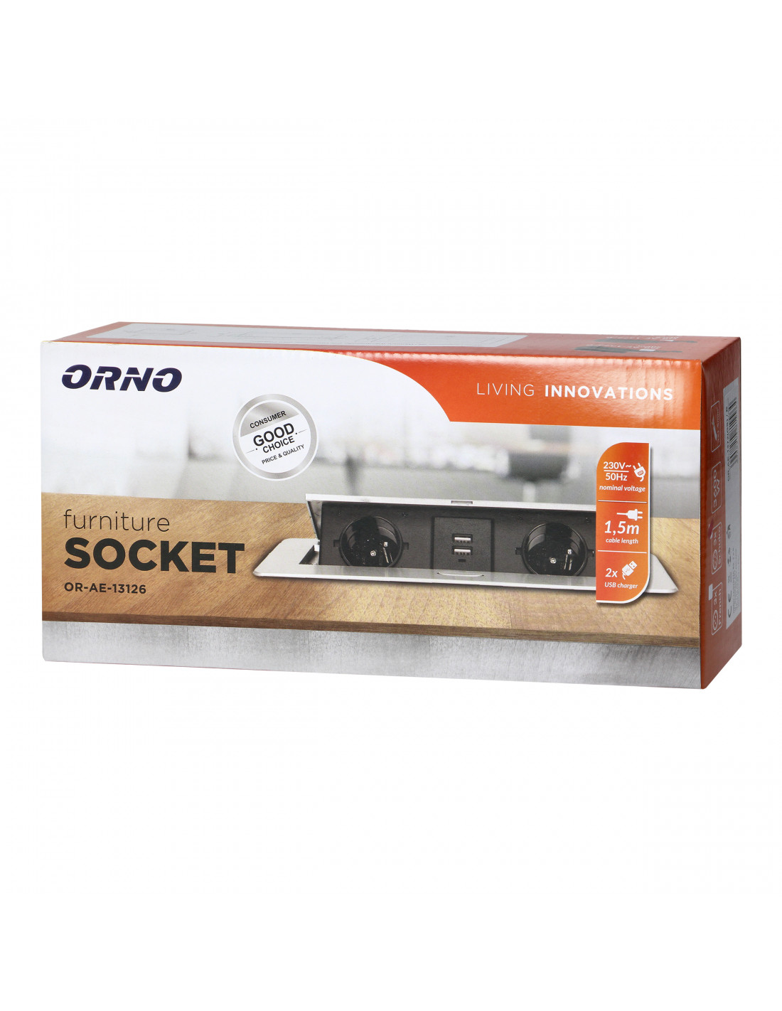 Gniazdo meblowe wpuszczane w blat z płaskim frezowanym rantem i przewodem 1,5m,...