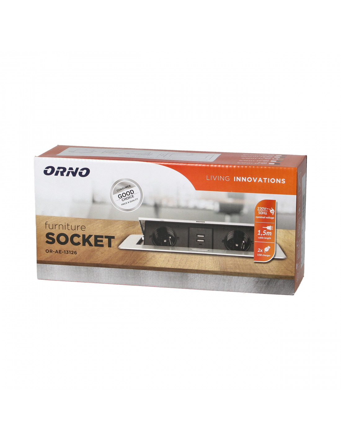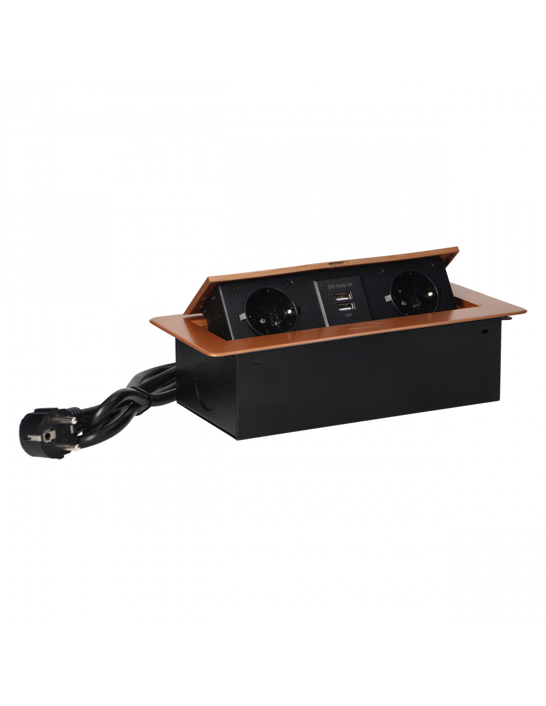 Gniazdo meblowe Ø10cm wysuwane z blatu z przewodem 1,5m, 4x2P+Z, wersja schuko