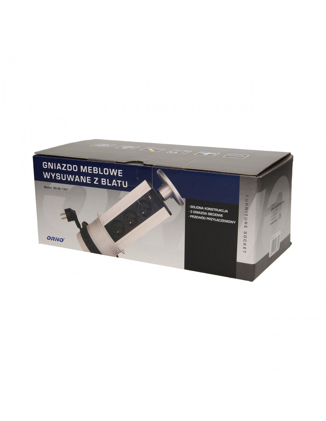 Gniazdo meblowe wysuwane z blatu z płaskim frezowanym rantem, ładowarką USB i...