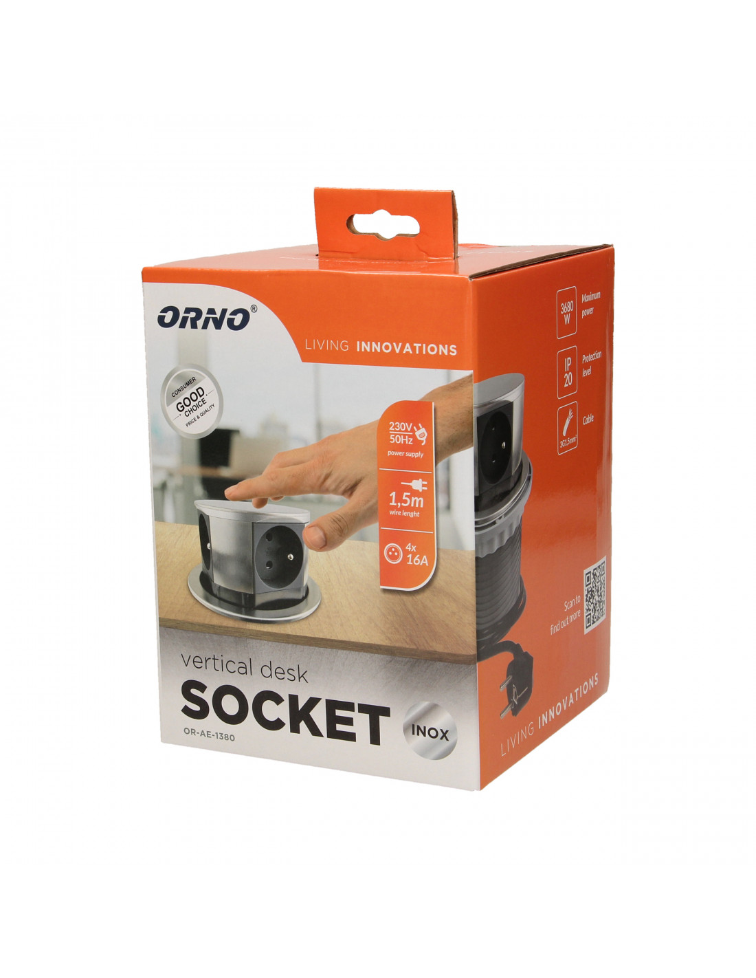 Gniazdo meblowe wpuszczane w blat z płaskim rantem, 3x2P+Z (Schuko),srebrne