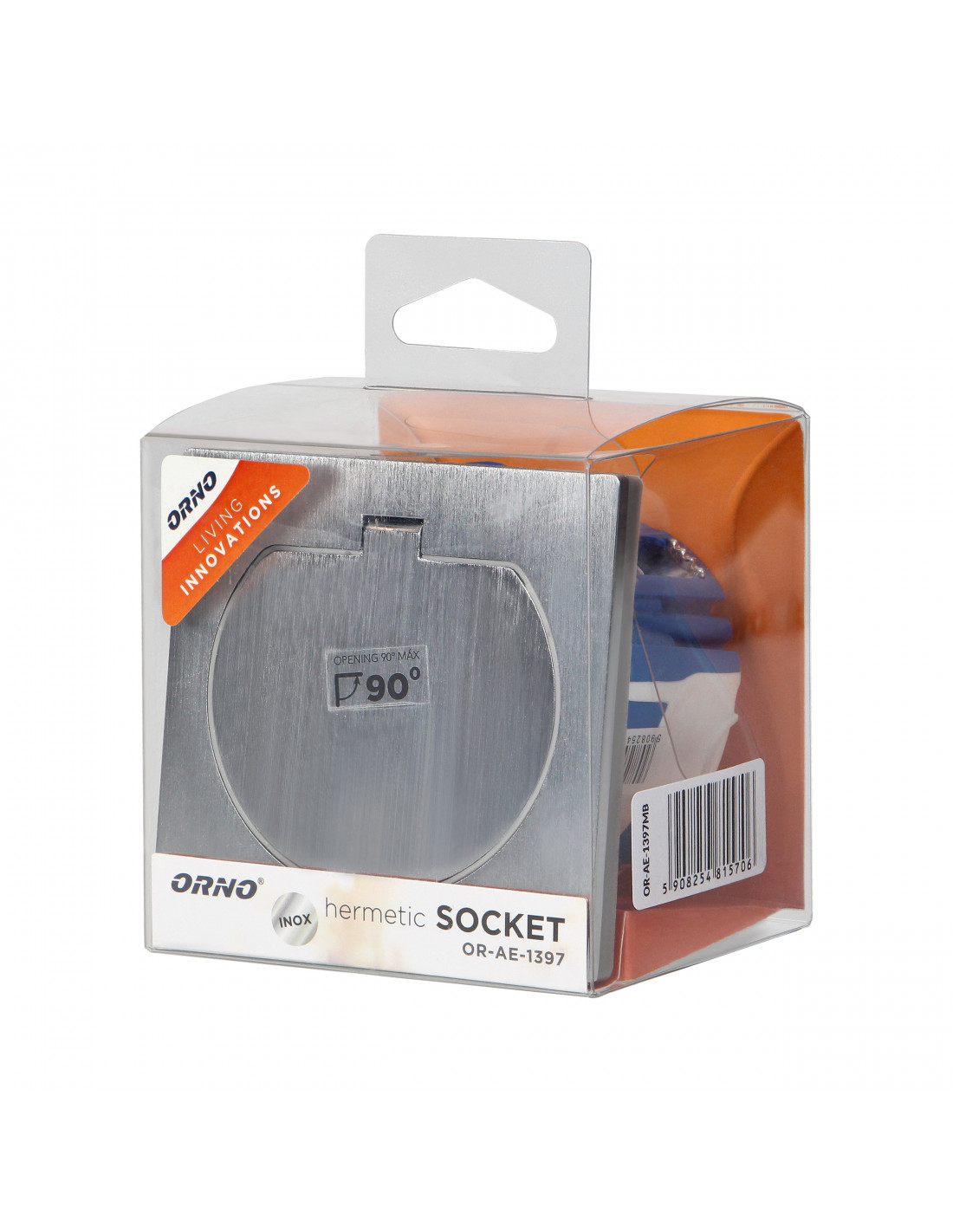 Gniazdo sieciowe typu E z uziemieniem i przesłonami torów prądowych, w hermetycznej obudowie zabezpieczone dodatkową uszczelką. Produkt sprzedawany w zestawie z wiatroszczelną puszką montażową jest odpowiedni do montażu w standardowym otworze Ø60 mm. Zastosowanie takiego rozwiązania gwarantuje wysoki stopień szczelności (IP55) zarówno w części zewnętrznej gniazda, jak i wewnętrznej. Wykonany ze stali nierdzewnej produkt jest eleganckim i bardzo estetycznym rozwiązaniem wszędzie tam, gdzie istnieje potrzeba podłączenia dodatkowych odbiorników.