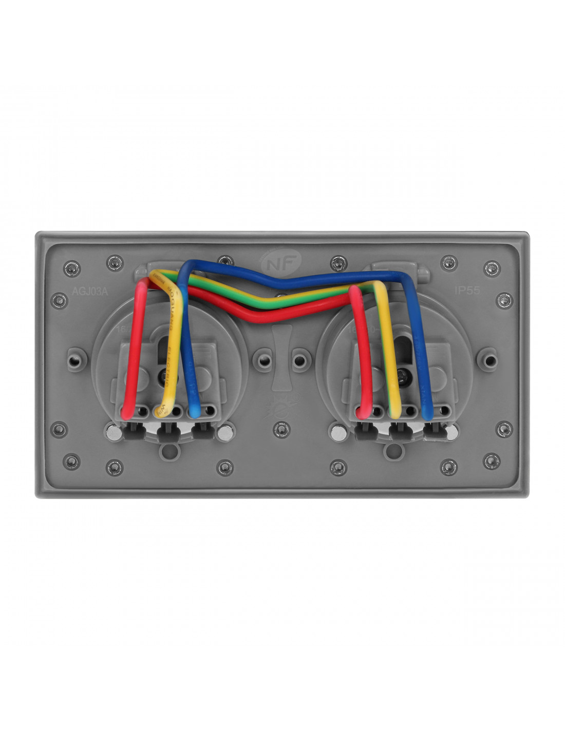 Hermetyczne gniazdo elektryczne podwójne, IP55 stal nierdzewna, z wiatroszczelną puszką montażową