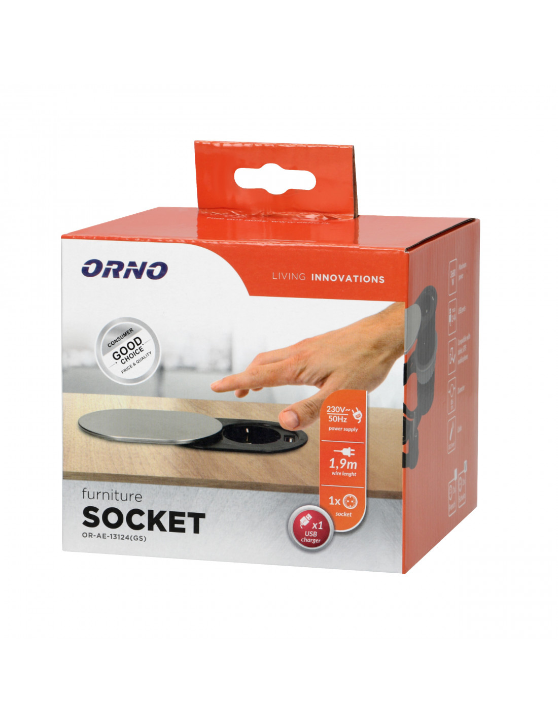 Gniazdo meblowe wpuszczane w blat z płaskim frezowanym rantem, szczotką...