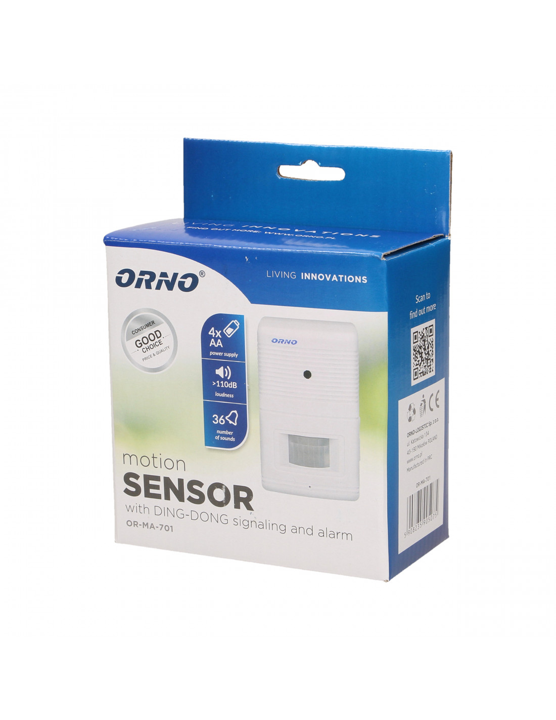 Sygnalizator ruchu do kontroli drzwi wejściowych, pomieszczeń magazynowych itp., dźwięk: ding dong lub alarm, kąt widzenia czujnika: 100°, czas trwania alarmu: 15–20 sekund, zasięg czujnika: 4–5 m.