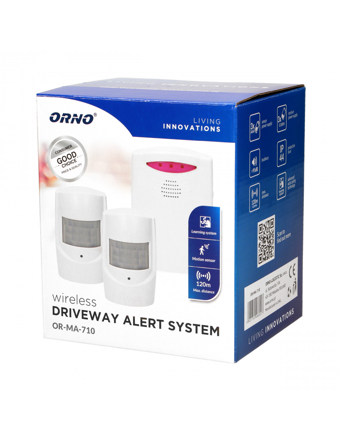Zestaw dwóch czujników ruchu do kontroli drzwi wejściowych, korytarzy, pomieszczeń magazynowych, piwnic, wjazdów, parkingów itp., z powiadomieniem na pager (odbiornik), sygnalizacja słabych baterii, zasięg w terenie otwartym: 120 m, zasięg wykrywania ruchu czujnika: 7 m, kąt widzenia czujnika ok. 45°, wodoodporny czujnik, 2 czujniki ruchu w zestawie.