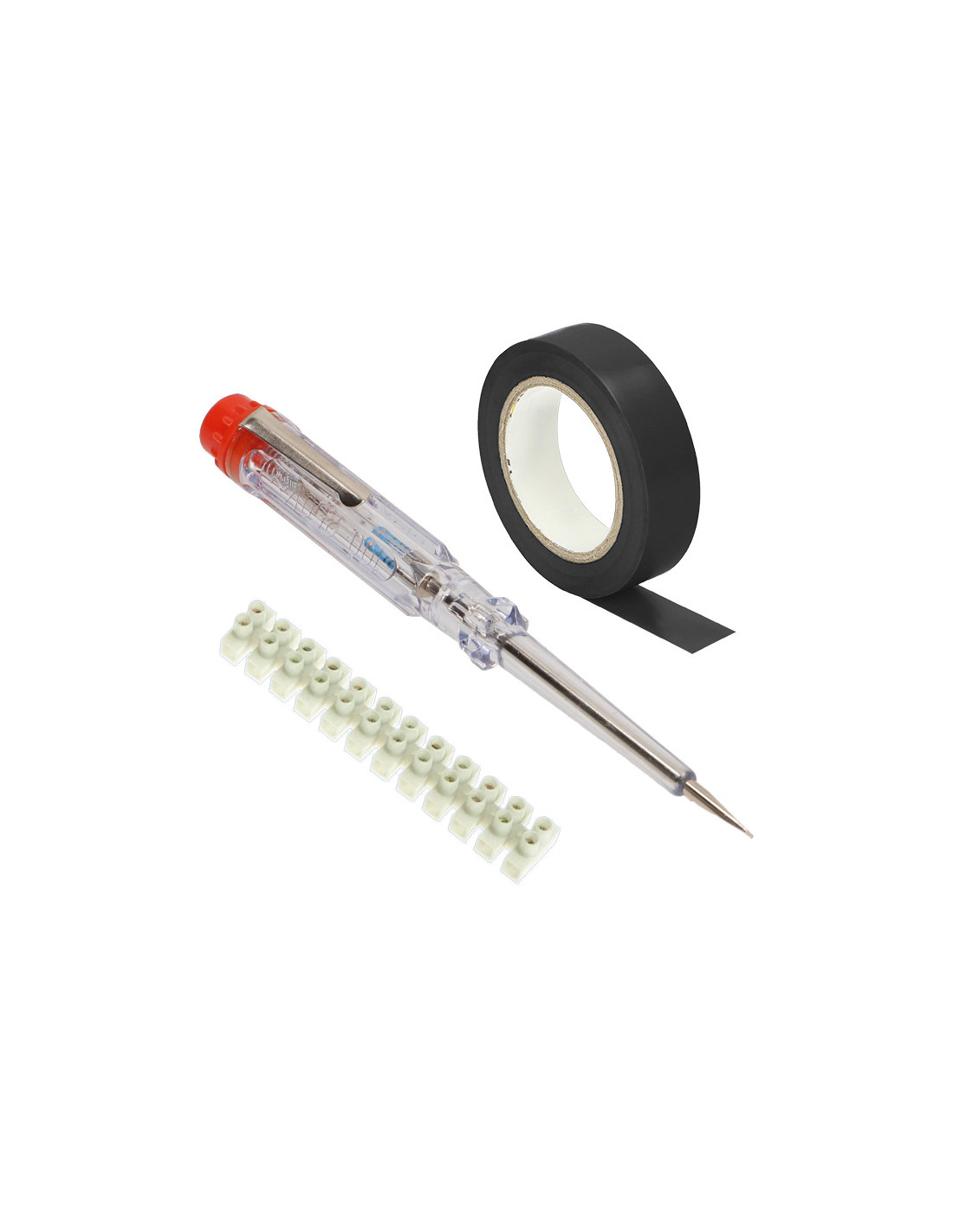 Zestaw instalacyjny na który składa się z próbnik ,czyli wskaźnik obecności napięcia od 100 do 250V, który posiada neonową diodę sygnalizacyjną, stalowy, płaski grot oraz izolowany na całej długości trzpień. Dodatkowo w zestawie jest listwa zaciskowa wykonana z tworzywa sztucznego, która umożliwia łatwe rozdzielanie torów za pomocą noża a także uniepalniona samoprzylepna taśma izolacyjna do stosowania jako izolator dla połączeń elektrycznych.