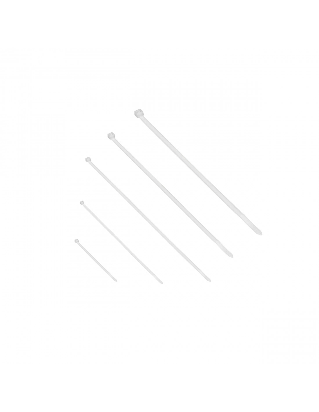 Zestaw 100 szt. opasek kablowych, które ułatwiają układanie przewodów w trasach kablowych i pomagają uporządkować okablowanie w biurze przy zastosowaniu odpowiednich akcesoriów. Zestaw zawiera: 2,5x100mm -20szt., 2,5x 200mm - 20szt., 3,6x300mm - 20 szt., 4,8x300mm - 20szt., 7,5x300mm - 20szt. Kolor: naturalny.
