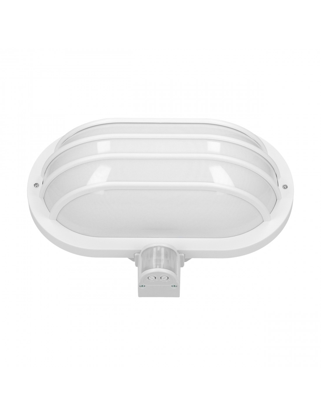 Oprawa przeznaczona do automatycznego oświetlania terenów zewnętrznych, a także pomieszczeń, takich jak klatki schodowe, korytarze, piwnice, garaże, magazyny itp. Wyposażona jest w pasywny czujnik podczerwieni, który reaguje w chwili pojawienia się ruchu. Kąt detekcji: 180°, potencjometry do regulacji: czasu świecenia i czułości natężenia światła. Kolor - biały. Materiał: tworzywo sztuczne.