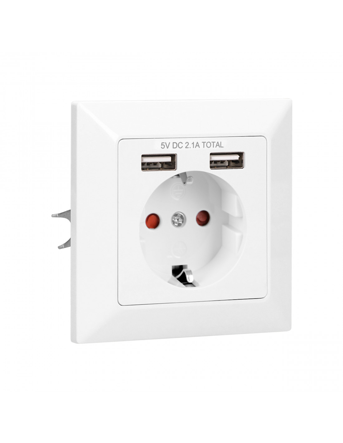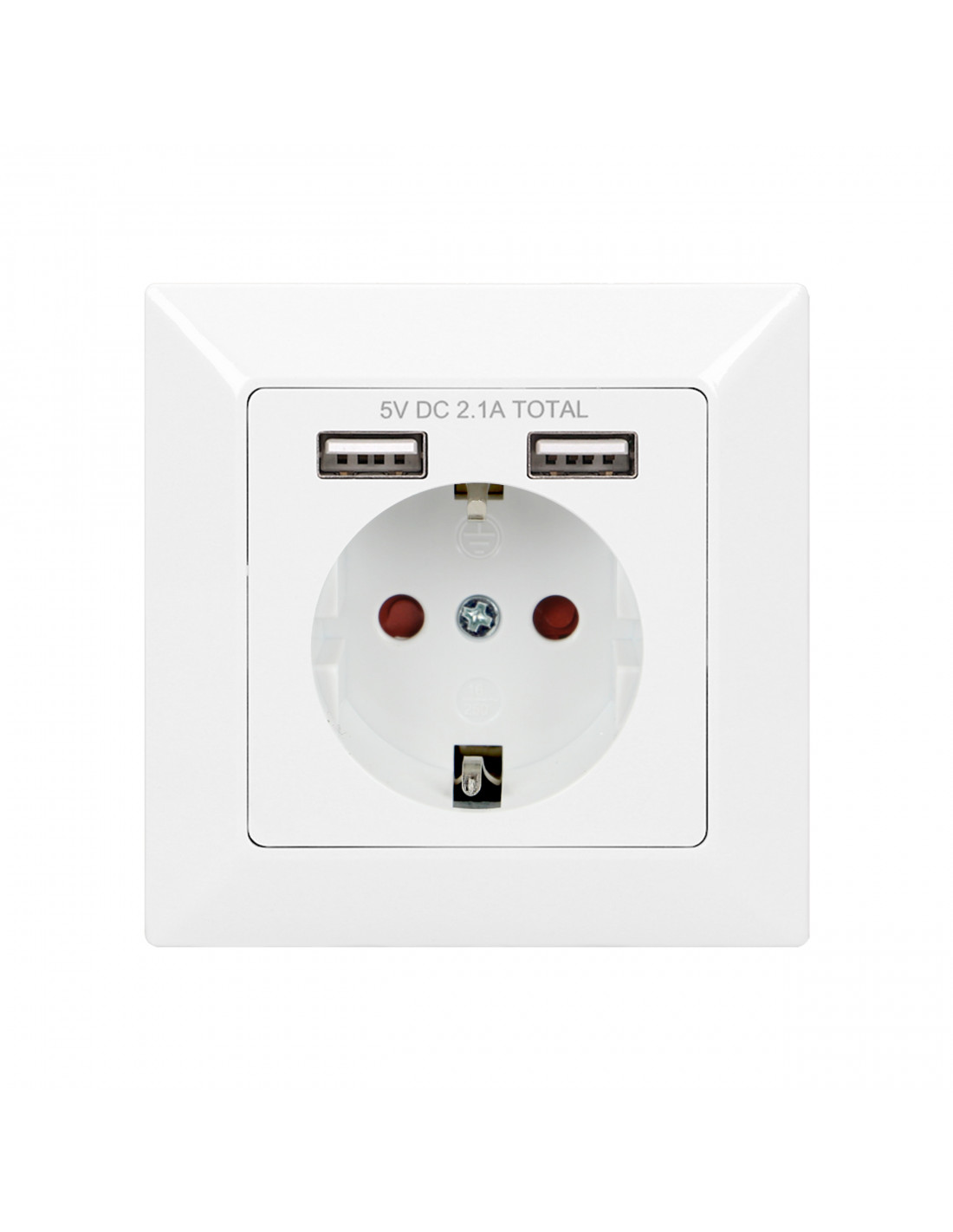 Gniazdo elektryczne 2P+Z z dodatkowymi portami ładowarki USB. Po podłączeniu odpowiedniego kabla USB (brak w zestawie) umożliwia ładowanie większości telefonów, tabletów i urządzeń mobilnych dostępnych na rynku, w tym iPhone, iPad, iPod itp. Montaż w standardowej puszcze fi 60 mm.