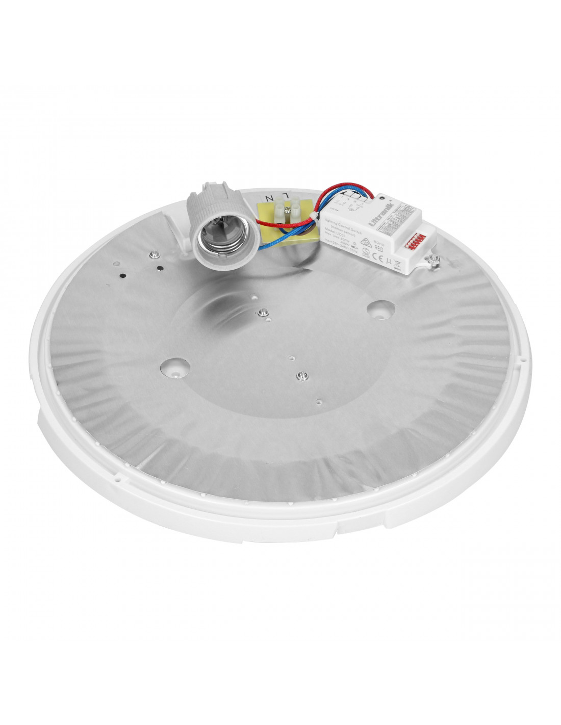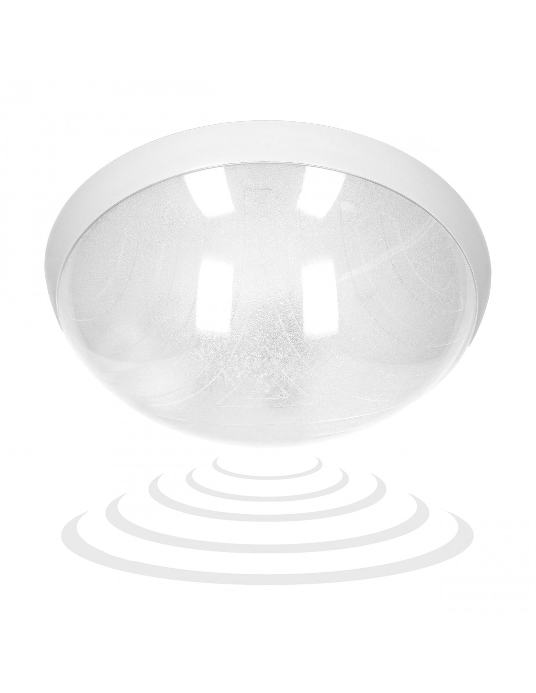 Plafon przeznaczony do oświetlenia wewnętrznych i zewnętrznych części pomieszczeń takich jak klatki schodowe, korytarze, werandy, piwnice, garaże, pomieszczenia gospodarcze, elewacje budynków itp.. Odporny na uderzenia klosz wykonany jest z wysokiej jakości poliwęglanu. Podstawa dostępna jest w kolorze białym. Plafon dodatkowo posiada wbudowany mikrofalowy czujnik ruchu, który reaguje w chwili pojawienia się ruchu, a czujnik zmierzchowy ( w zależności od ustawień) załącza oświetlenie tylko wtedy, gdy jest taka potrzeba.