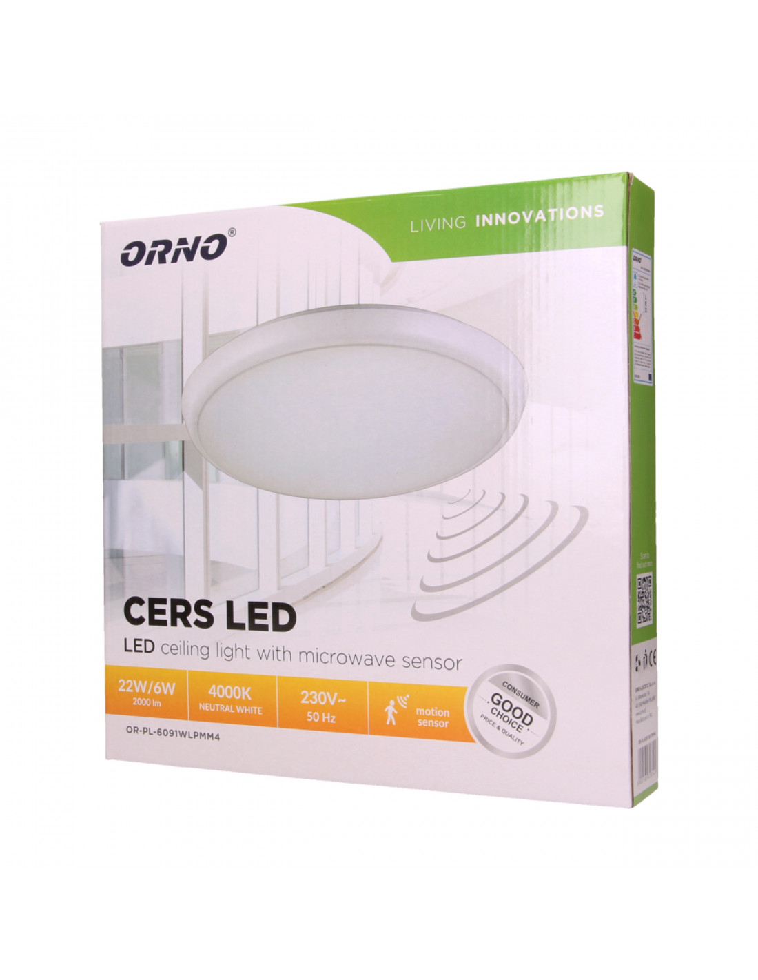 CERS LED 22W, plafon z mikrofalowym czujnikiem ruchu, 2000lm, IP54, 4000K, poliwęglan mleczny biały, funkcja...