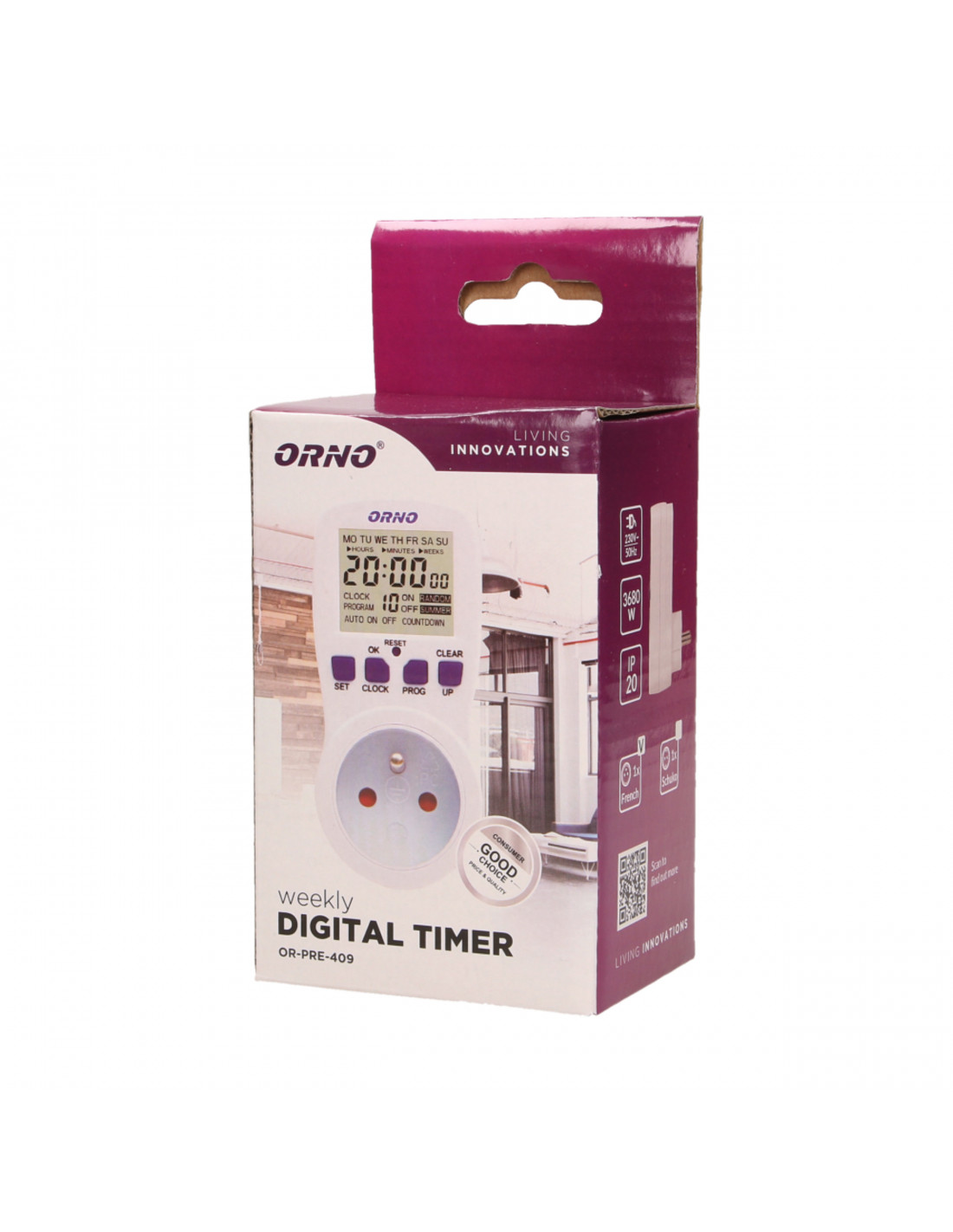 Programator z dużym wyświetlaczem LCD do ustawiania czasu włączania i wyłączania urządzeń elektrycznych takich jak: oświetlenie, ogrzewacze wody, reklamy itp. Urządzenie posiada: 16 programów czasowych, ręczne lub losowe włączanie/wyłączanie, 16 kombinacji dnia tygodnia, funkcję czasu letniego i zimowego, funkcja odliczania COUNT DOWN.
