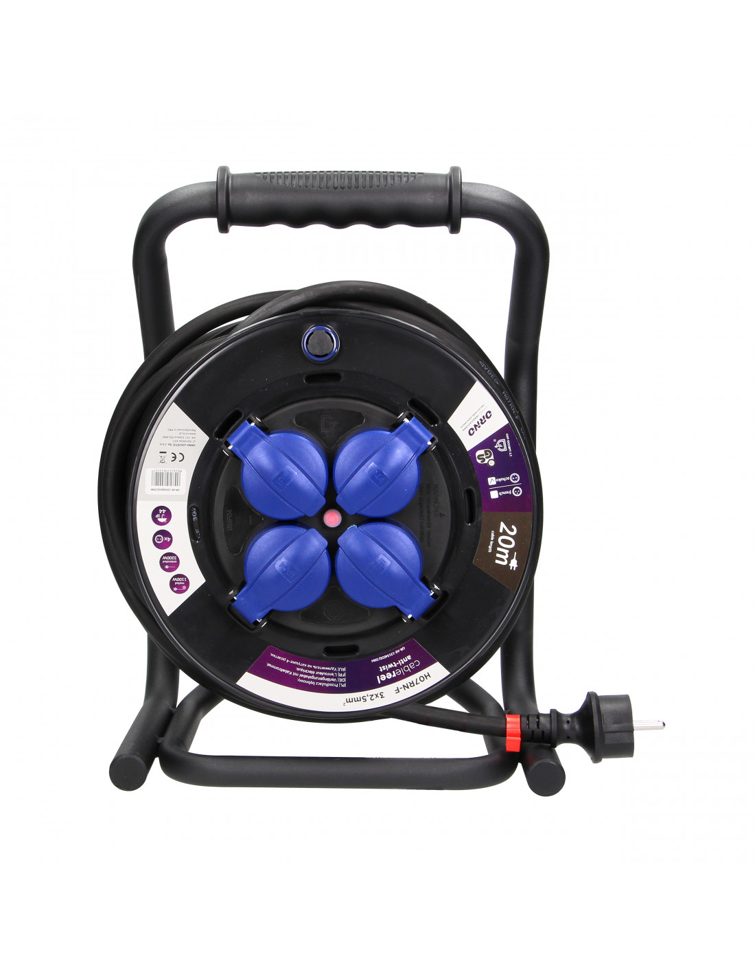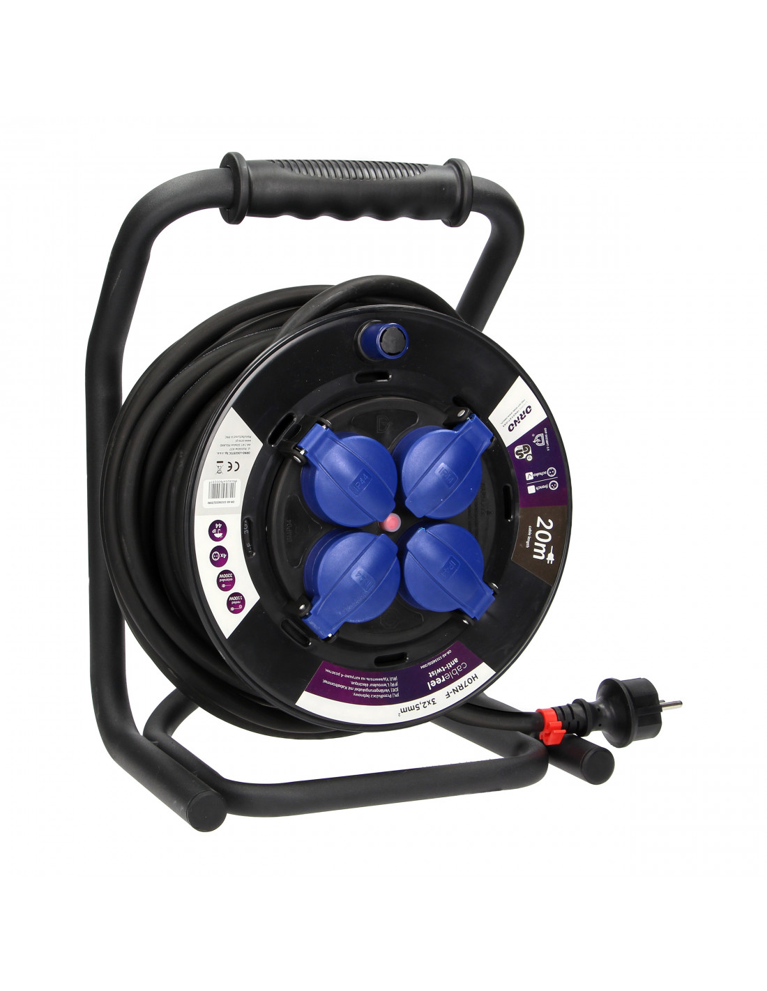 Przedłużacz bębnowy profesjonalny IP44, 4 gniazda 2P+Z, kabel gumowy olejoodporny,...