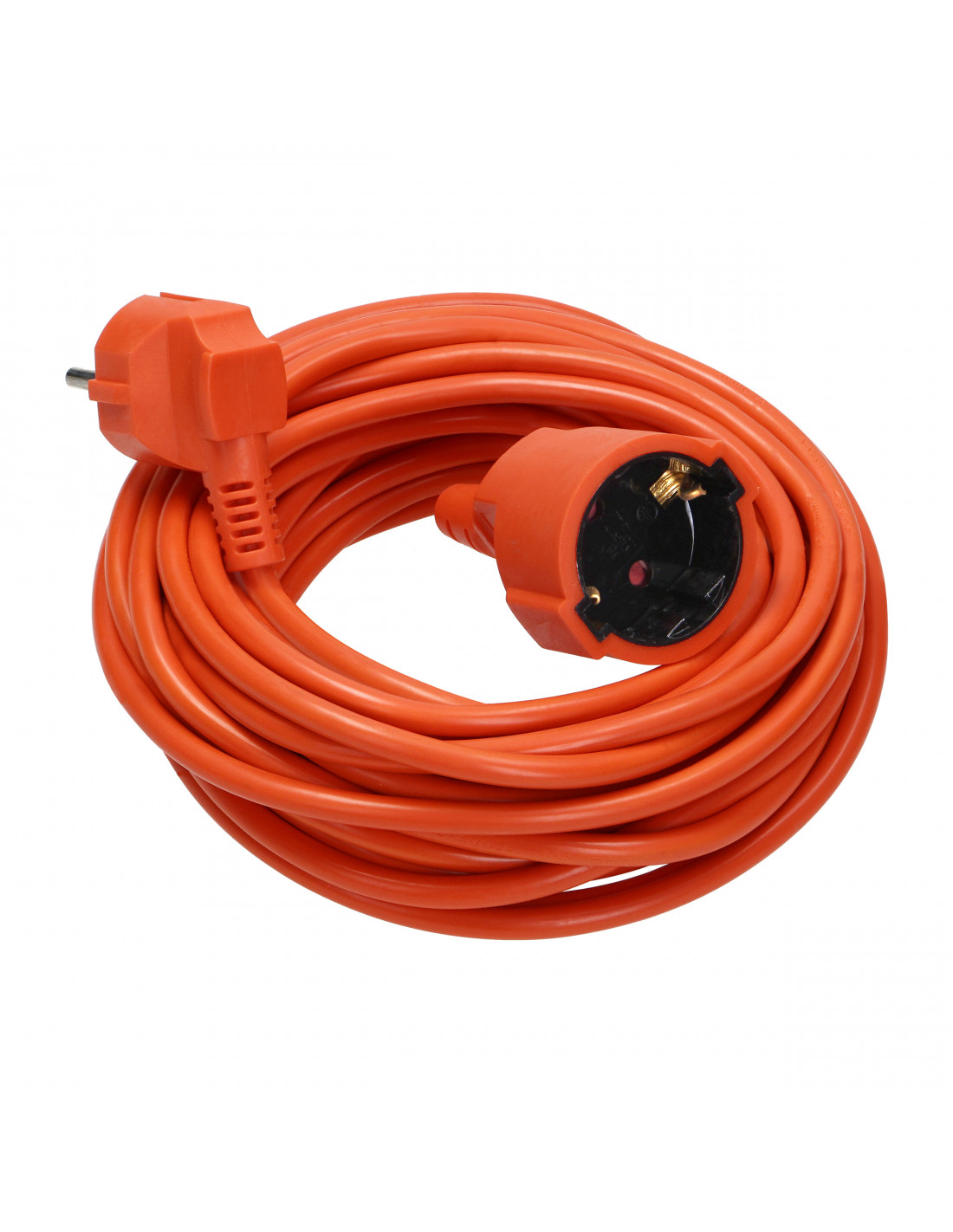 Przedłużacz ogrodowy o stopniu szczelności IP20, wykonany z PVC. Przedłużacz ma zalewane gniazdo i wtyczkę. Posiada 1 gniazdo z uziemieniem typu schuko (2P+Z) oraz giętki przewód H05VV-F o długości 20 metrów. Nadaje się do zasilania odbiorników AGD/RTV w lekkich warunkach użytkowania.