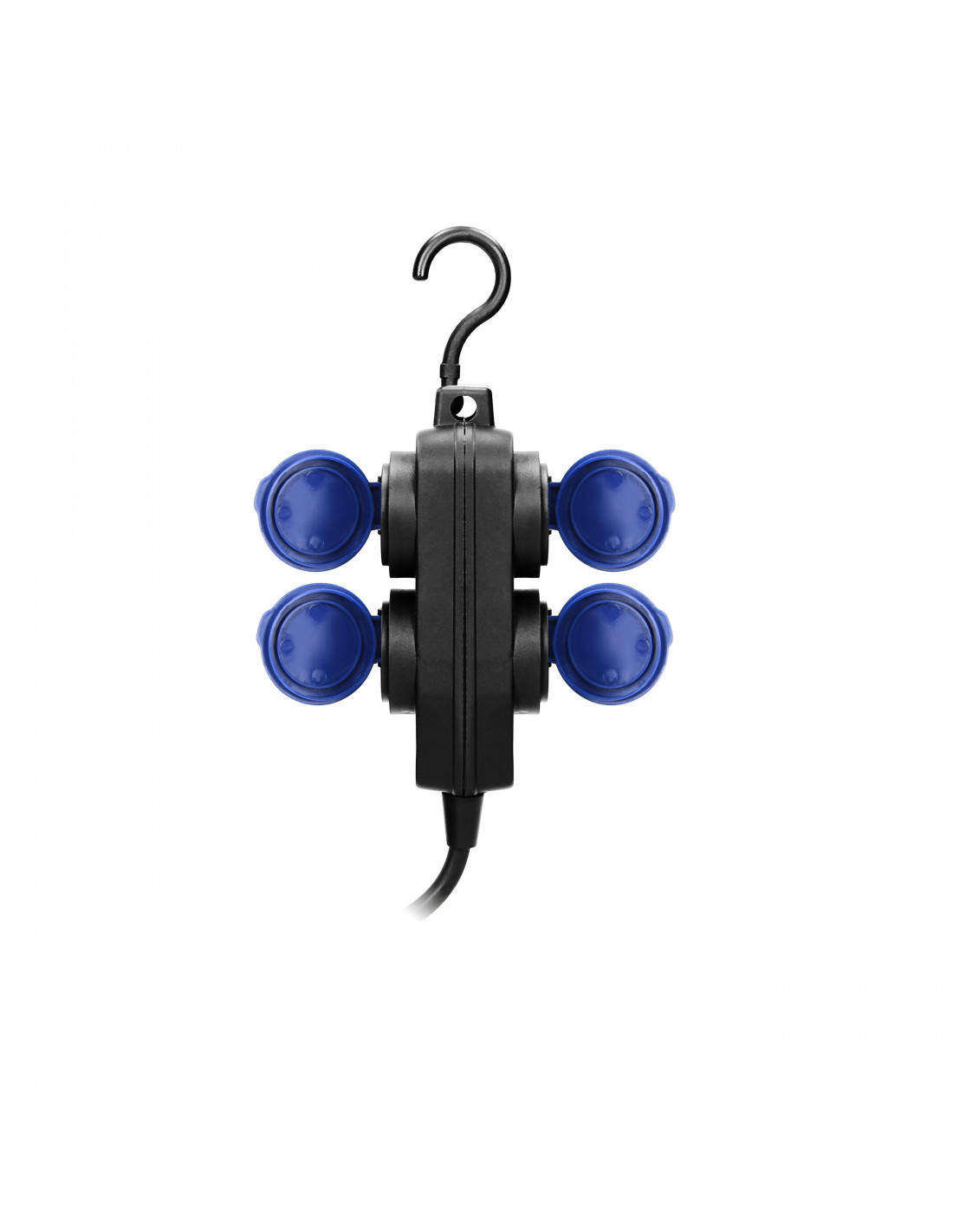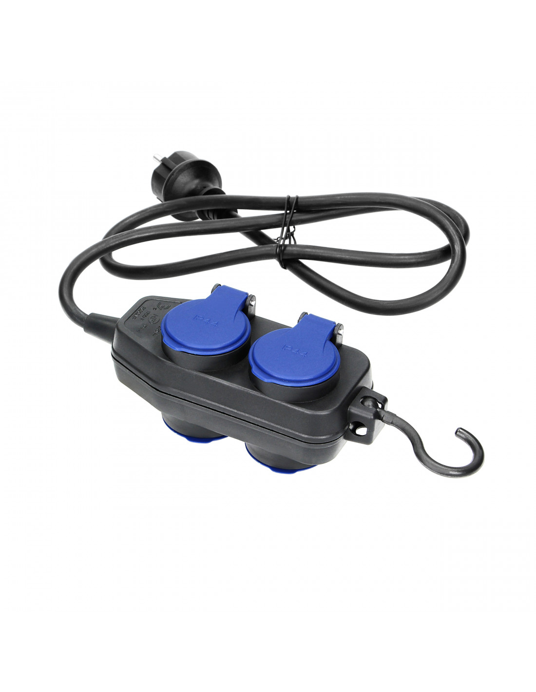 Przedłużacz warsztatowy, bryzgoszczelny bez wyłącznika z kablem w izolacji gumowej. Posiada 4 gniazda (2+2) sieciowe z uziemieniem i przesłonami torów prądowych oraz pokrywami uszczelniającymi, które chronią przed zabrudzeniami i wilgocią. Hak, który ułatwia montaż na stanowisku pracy.