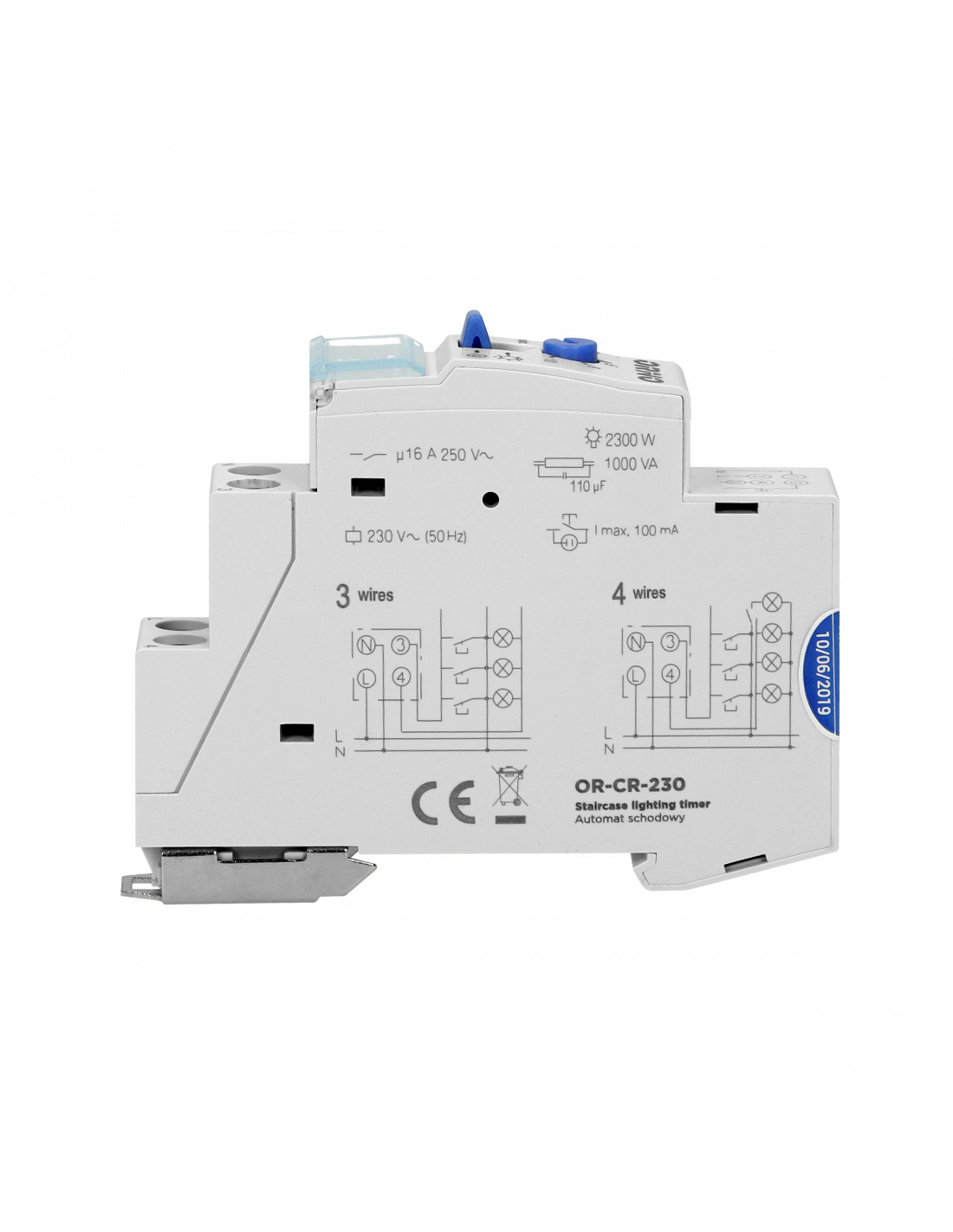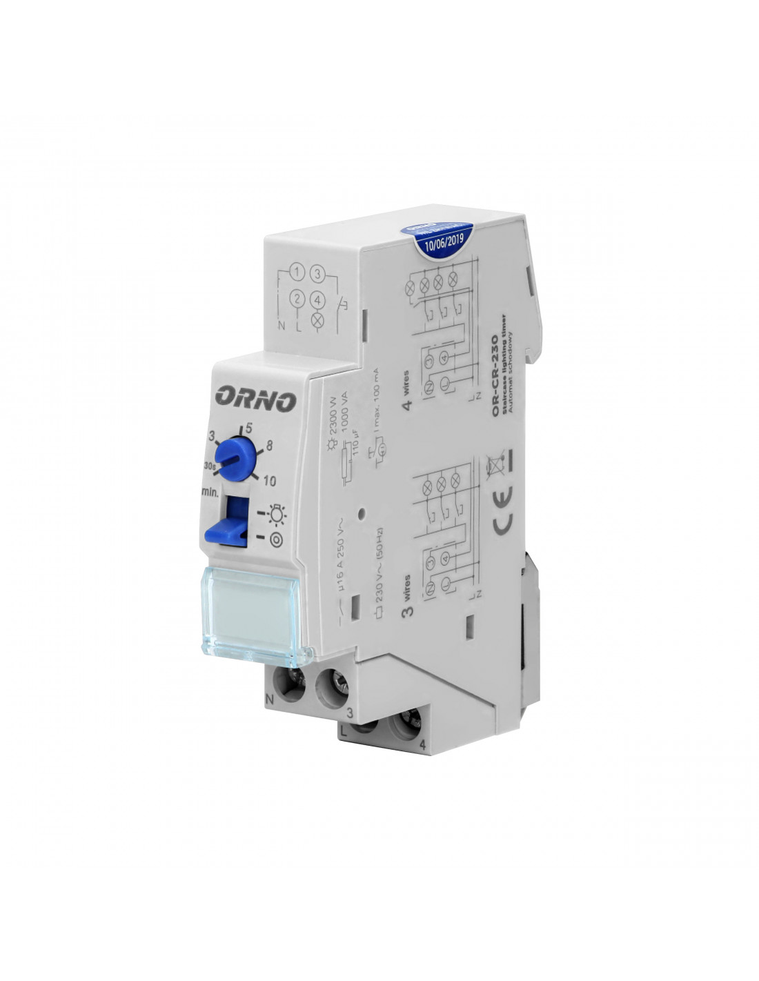 Automat schodowy, instalacja 3 lub 4 żyłowa, 1 moduł, DIN TH-35mm