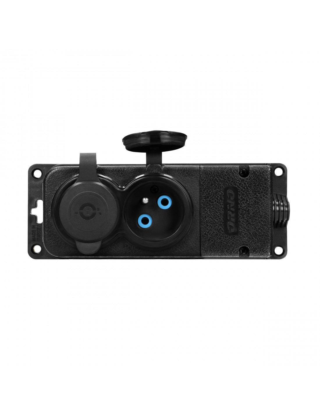 Rozdzielacz warsztatowy, o stopniu szczelności IP44. Posiada 2 gniazda (2P+Z) z gumową osłoną przeciw rozbryzgom wody i pyłom. Posiada otwór ułatwiający zawieszenie w bezpiecznym miejscu oraz 4 otwory na śruby służące do stałego montażu na stanowisku pracy. Złącze kablowe ukryto pod odkręcaną pokrywą. Do przeprowadzenia kabla służy wbudowany, gumowy przepust kablowy. Rozdzielacz posiada wyjątkowo niski 5cm profil.