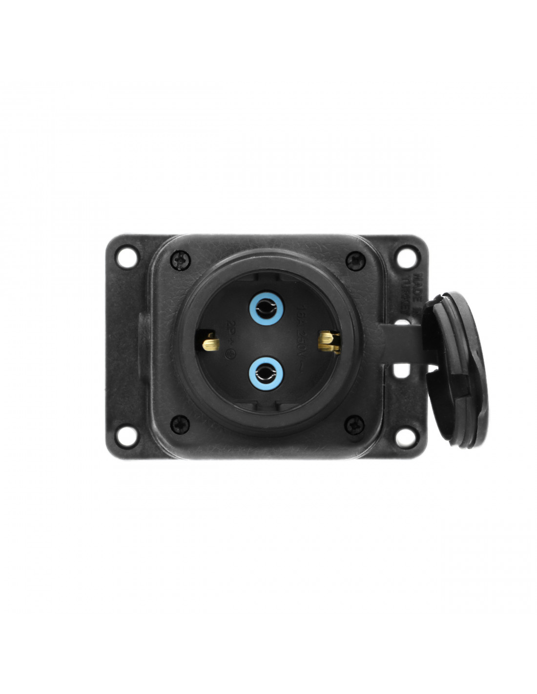 Rozgałęźnik bryzgoszczelny i odporny na uderzenia, IP44, 1 gniazdo 2P+Z, 16A, 230V AC, gumowy, uniepalniony, wersja...