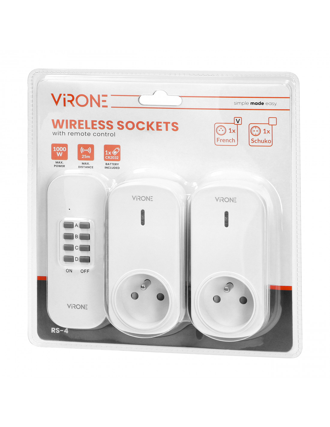 Zestaw bezprzewodowych mini gniazd sterowanych pilotem 3+1, wersja schuko