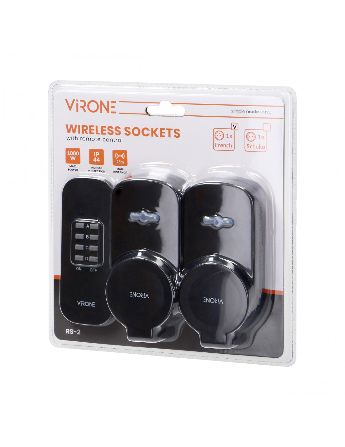 Zestaw bezprzewodowych mini gniazd sterowanych pilotem 2+1, IP44