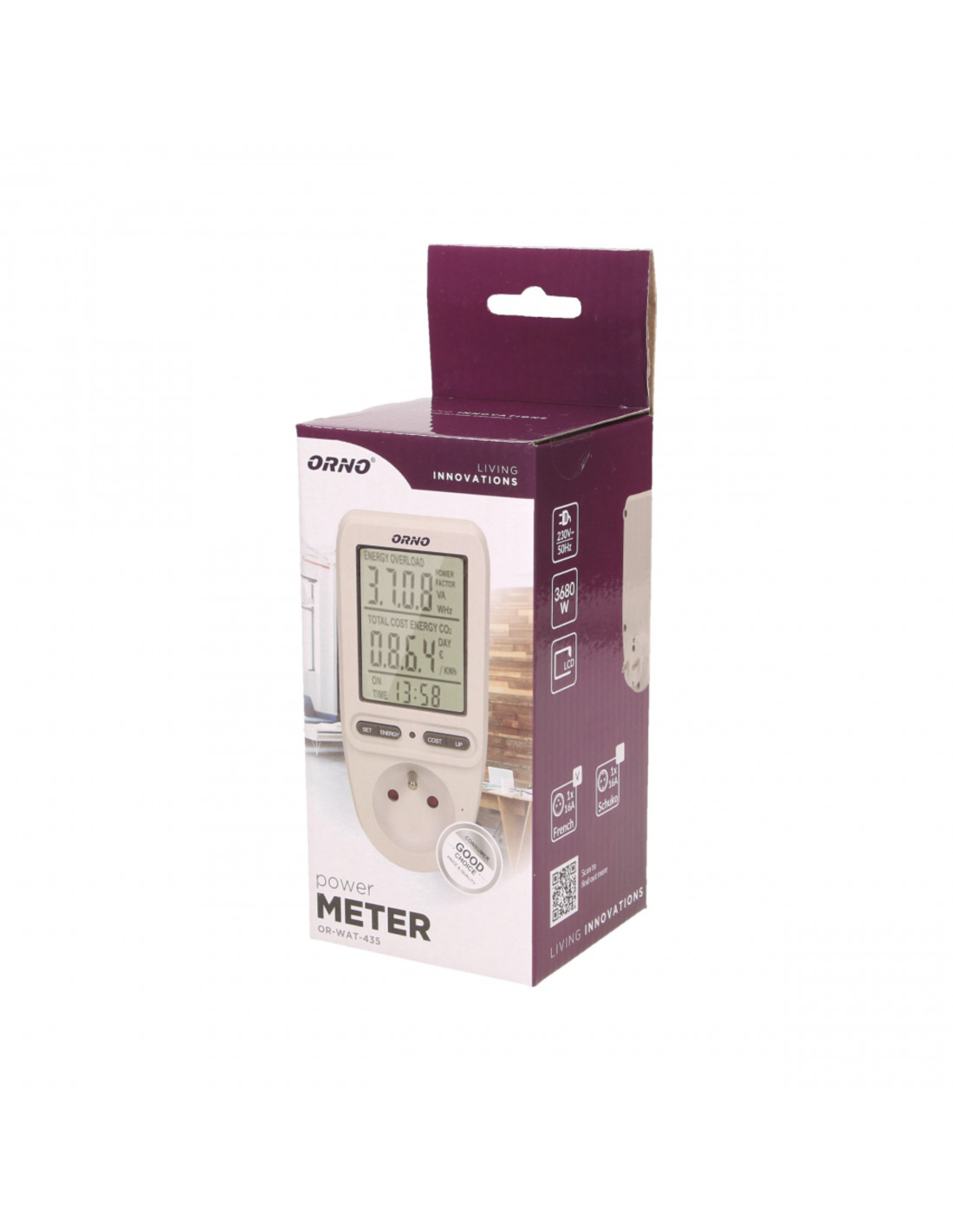 Jednotaryfowy watomierz, kalkulator energii z wyświetlaczem LCD, jedna taryfa,...