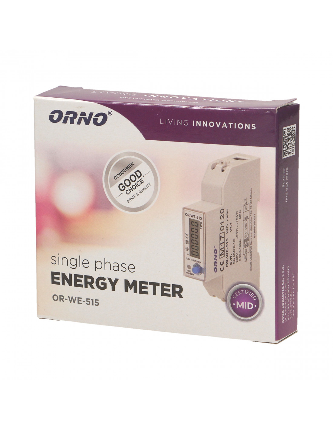 1-fazowy wskaźnik zużycia energii elektrycznej, 80A, port RS-485, 1 moduł, DIN TH-35mm