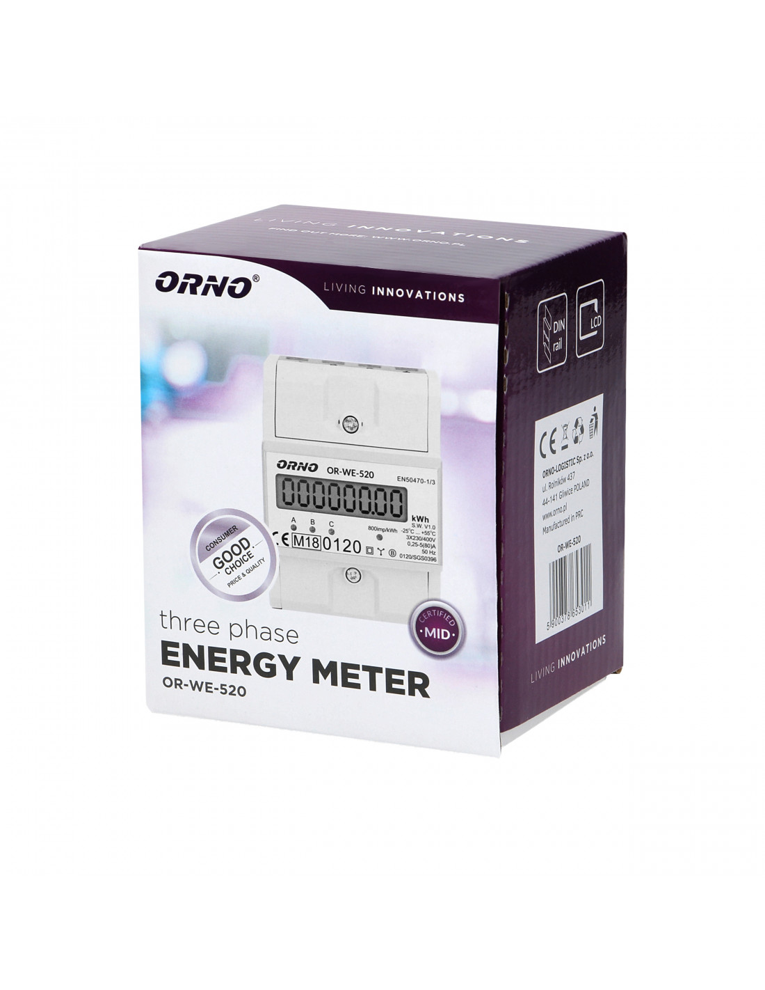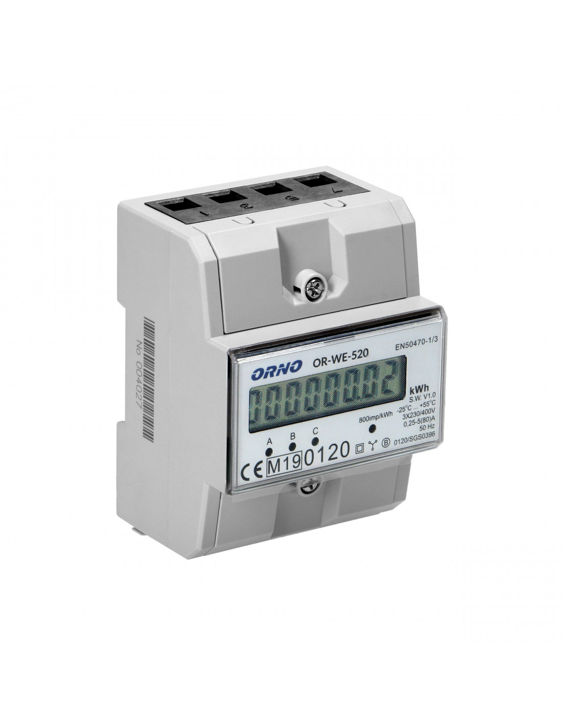 3-fazowy licznik energii elektrycznej, 80A, MID, 3 moduły, DIN TH-35mm