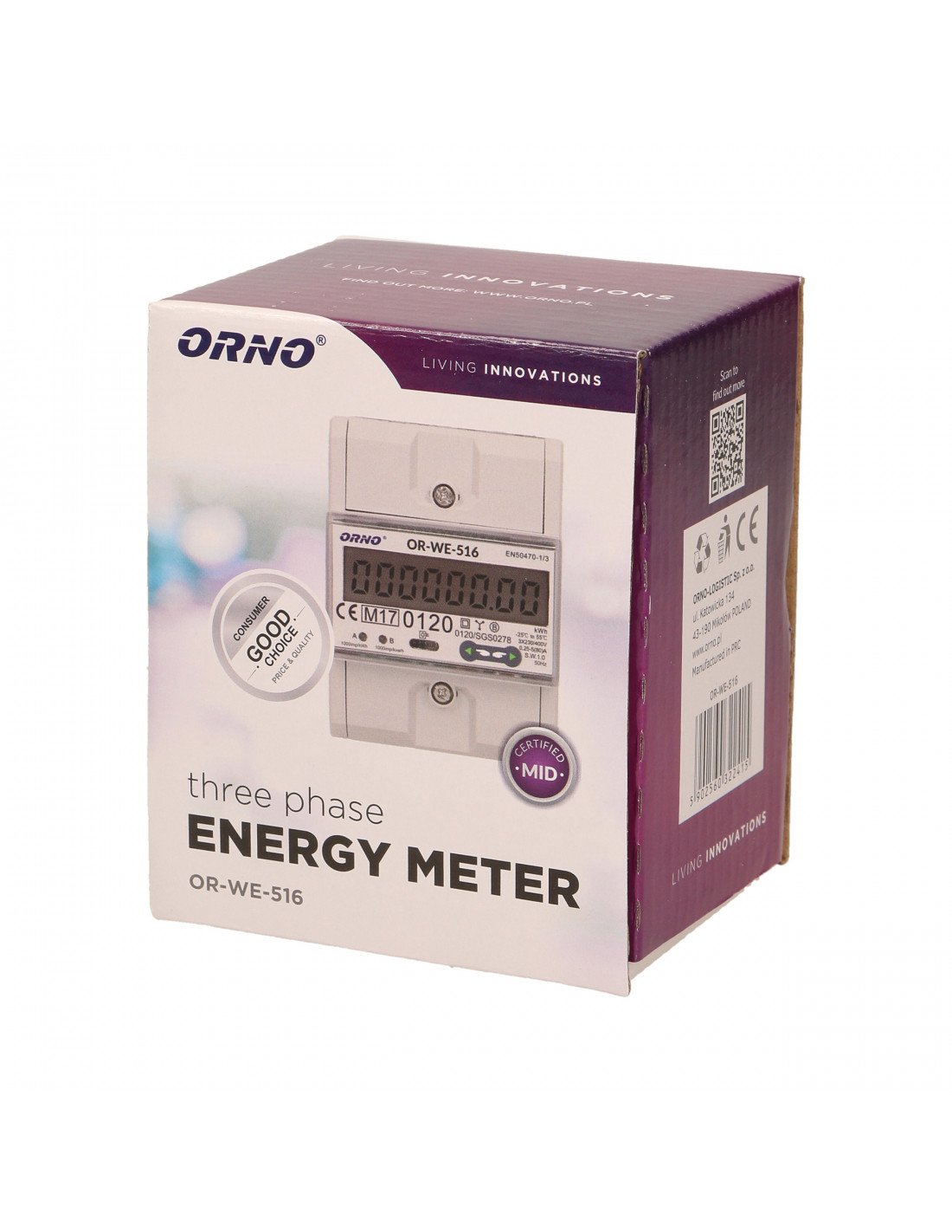 1-fazowy licznik energii elektrycznej, 40A, MID, wyjście impulsowe, podświetlenie, 1...